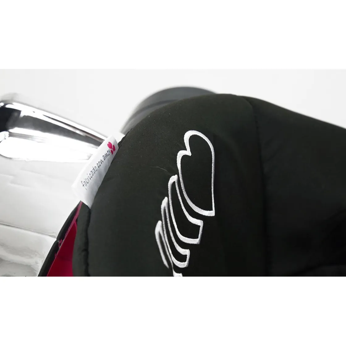 - Textiles de poliéster bordados en el respaldo y pegatinas en la estructura.