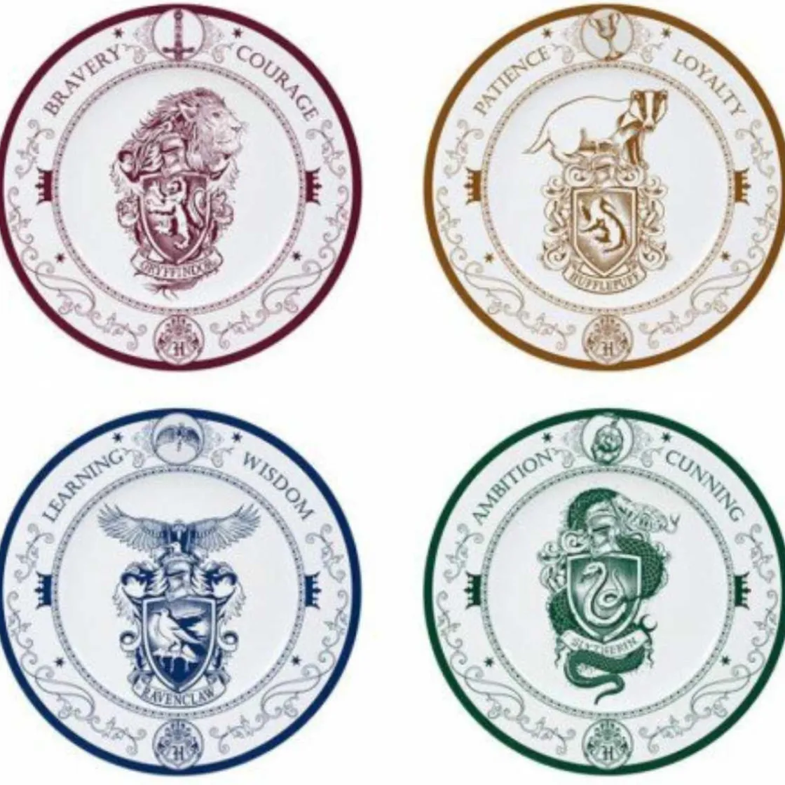 Harry Potter-Set de 4 platos Casas Hogwarts, set de 4 platos reproduciendo las 4 familias de Hogwarts.