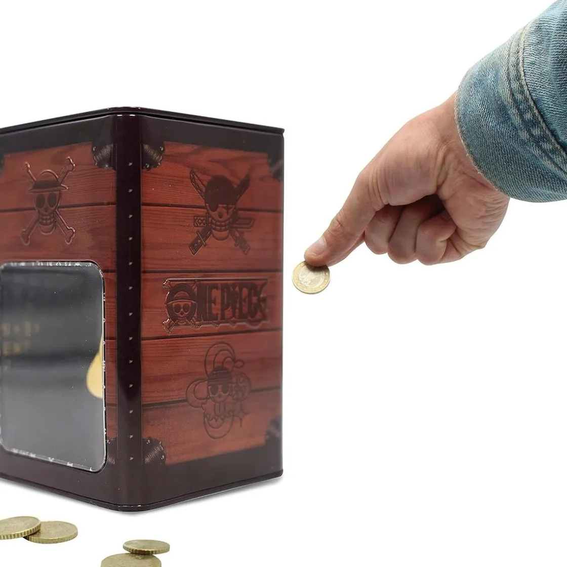 Esta hucha es 100% oficial y de excelente calidad, está hecha de metal resistente y tiene un tamaño cómodo, mide 10.8 x 10.8 x 16.6 cm. Su diseño espectacular y lleno de color, no solo te permite guardar tu dinero, sino que también añade un toque atractivo en cualquier lugar donde decidas colocarla. Como función adicional, y lo que la hace aún más emocionante, es que una vez que insertas una moneda, parece desaparecer, sin que puedas verla pasar junto al Sombrero de Paja flotante en el interior.