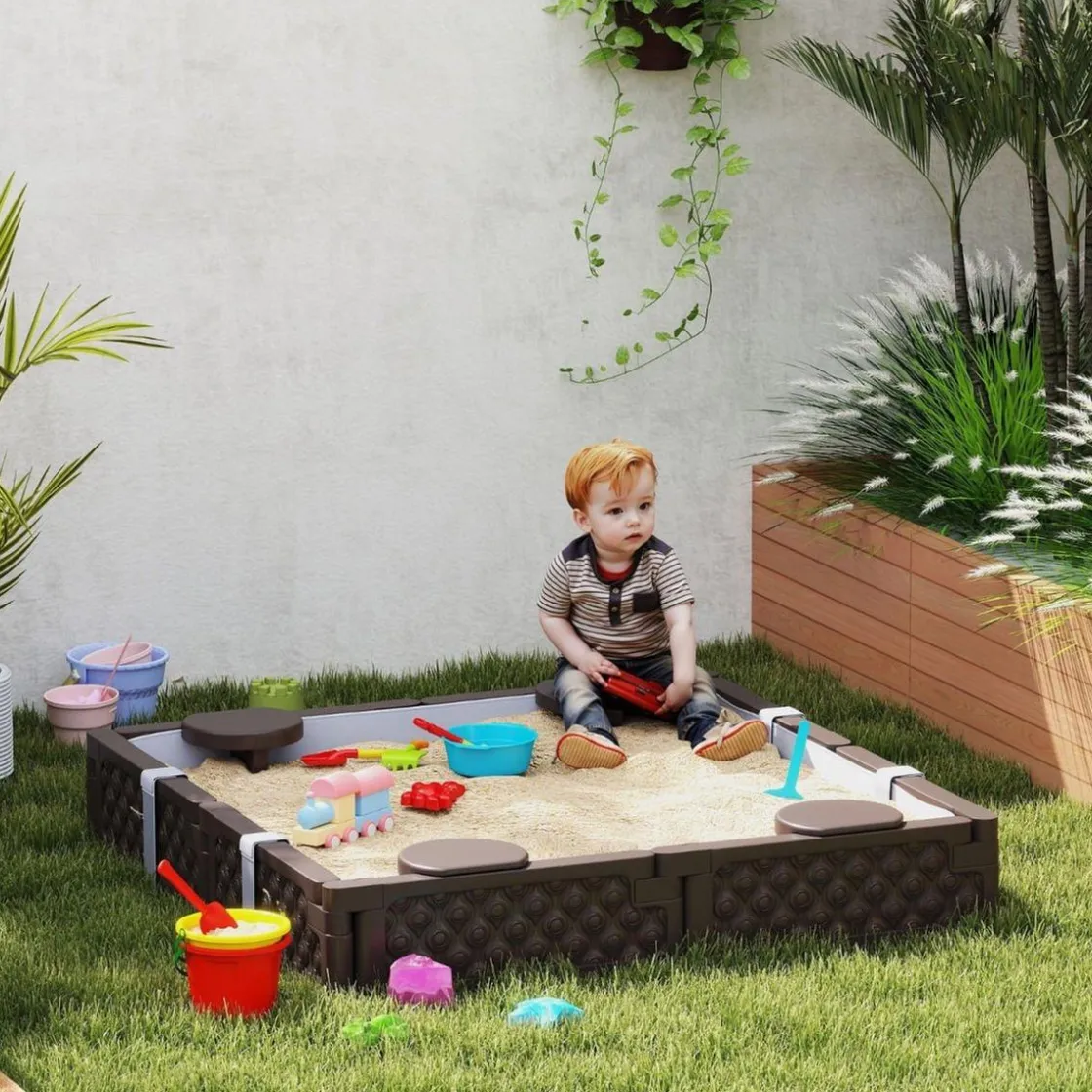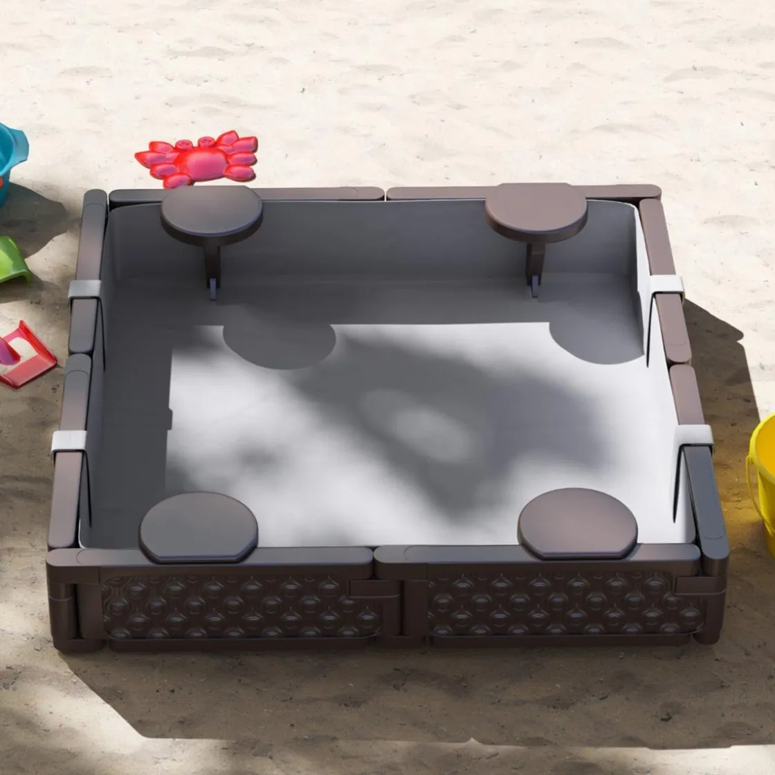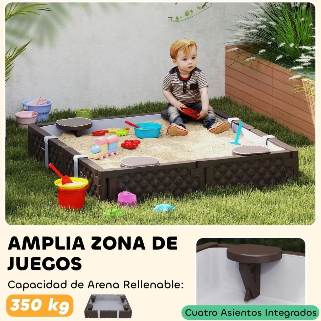 Este arenero es ideal para jardines, patios o terrazas, proporcionando un espacio seguro y divertido para que los niños jueguen y socialicen. Su diseño resistente y materiales de alta calidad garantizan durabilidad y seguridad en cada uso.