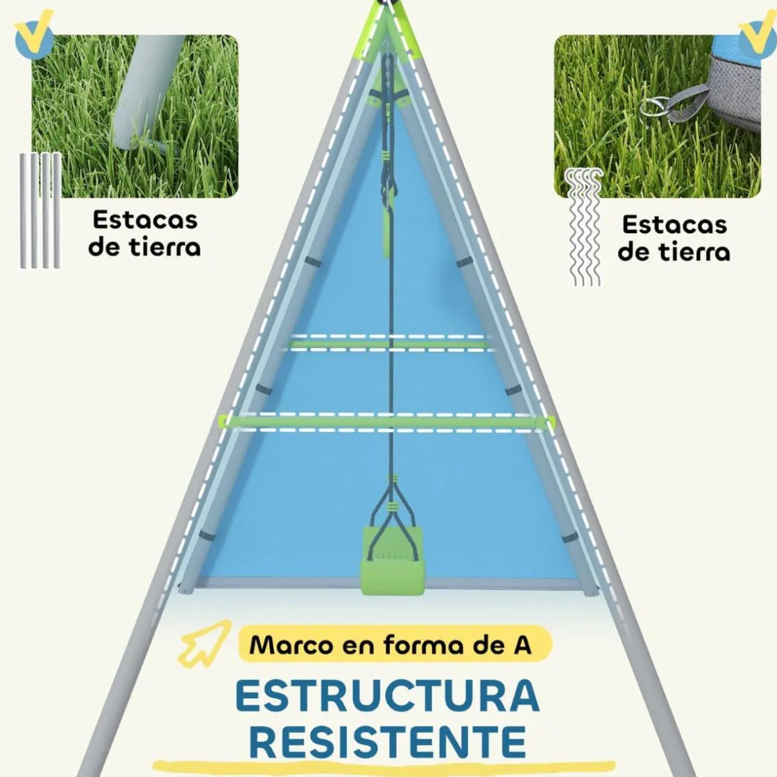 La estructura en A asegura estabilidad, mientras que la cuerda ajustable del columpio está diseñada para evitar pellizcos en los dedos. Además, la tienda impermeable ofrece un espacio protegido para juegos imaginativos al aire libre.
