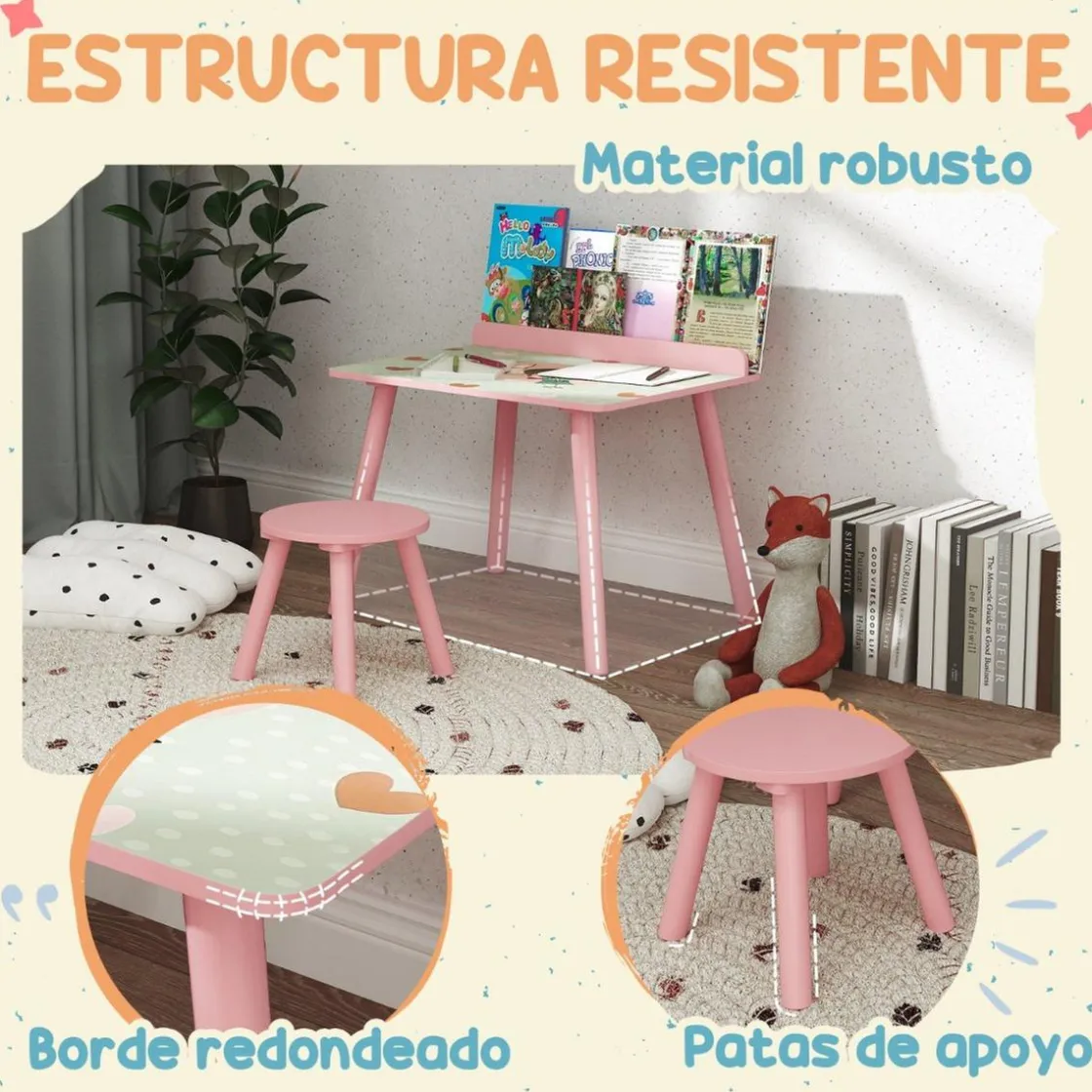 - Conjunto Infantil de dos piezas compuesto por una mesa y un taburete para niños
