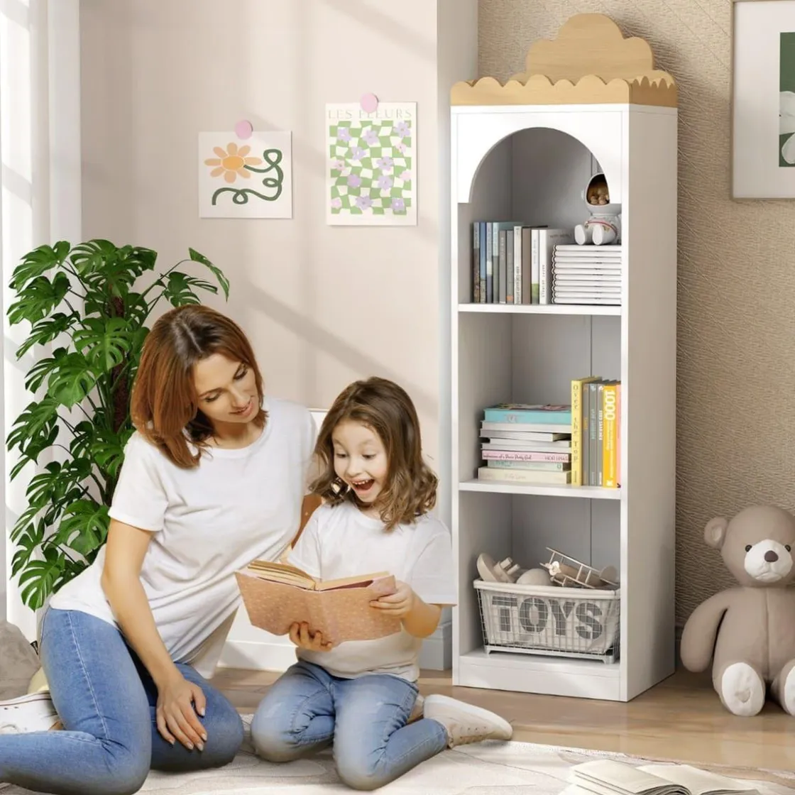Despierta el amor por la lectura de los niños con esta encantadora estantería para libros de AIYAPLAY. Con un bonito diseño de nube en la parte superior y tres estantes espaciosos, ofrece un amplio espacio para organizar la colección de libros de los pequeños.