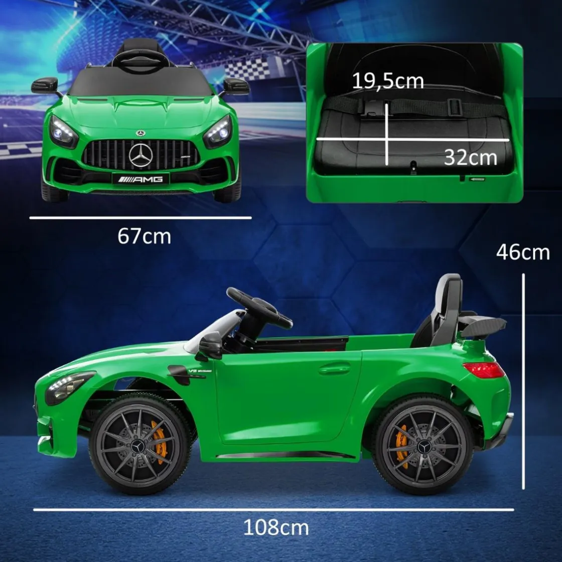 Homcom – Mercedes Benz AMG GTR eléctrico Verde con mando, un coche para niños que combina elegancia y funcionalidad, ofreciendo una experiencia de conducción realista y emocionante para los pequeños pilotos.