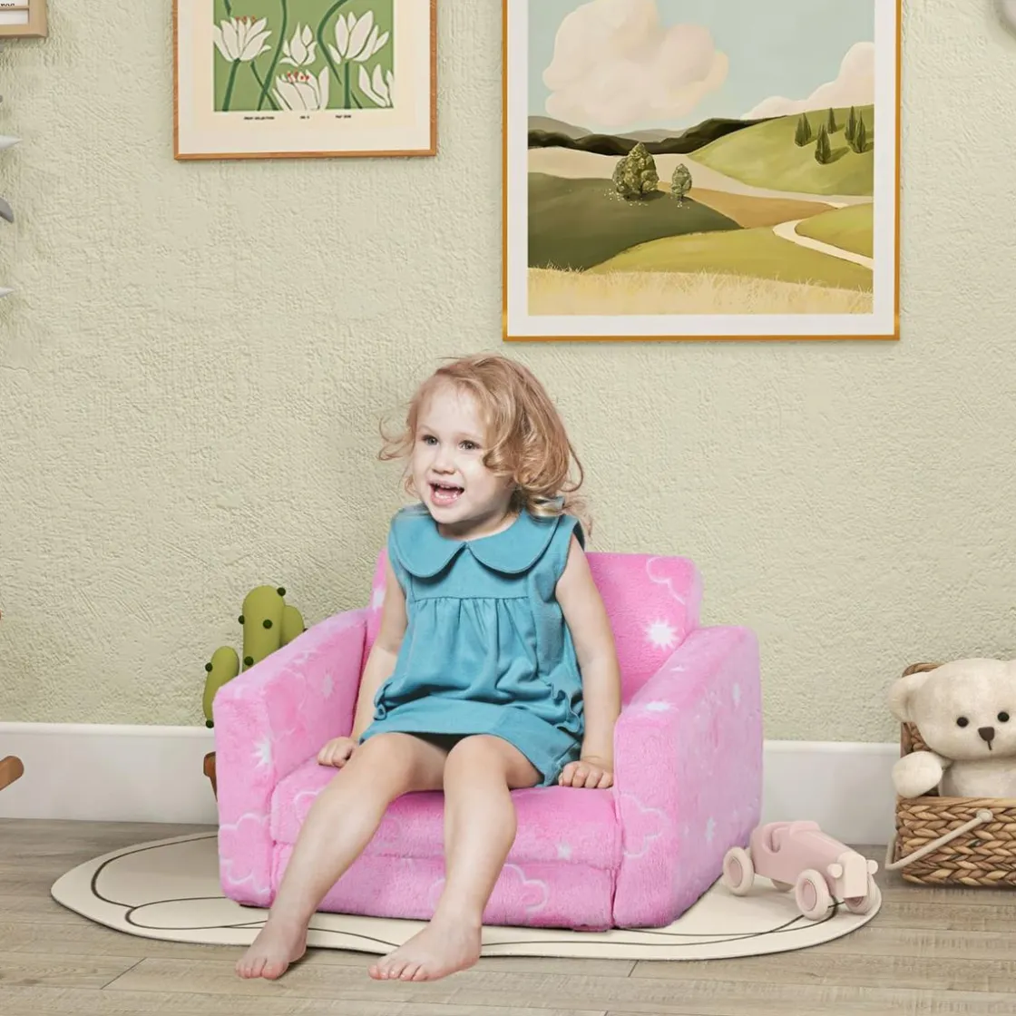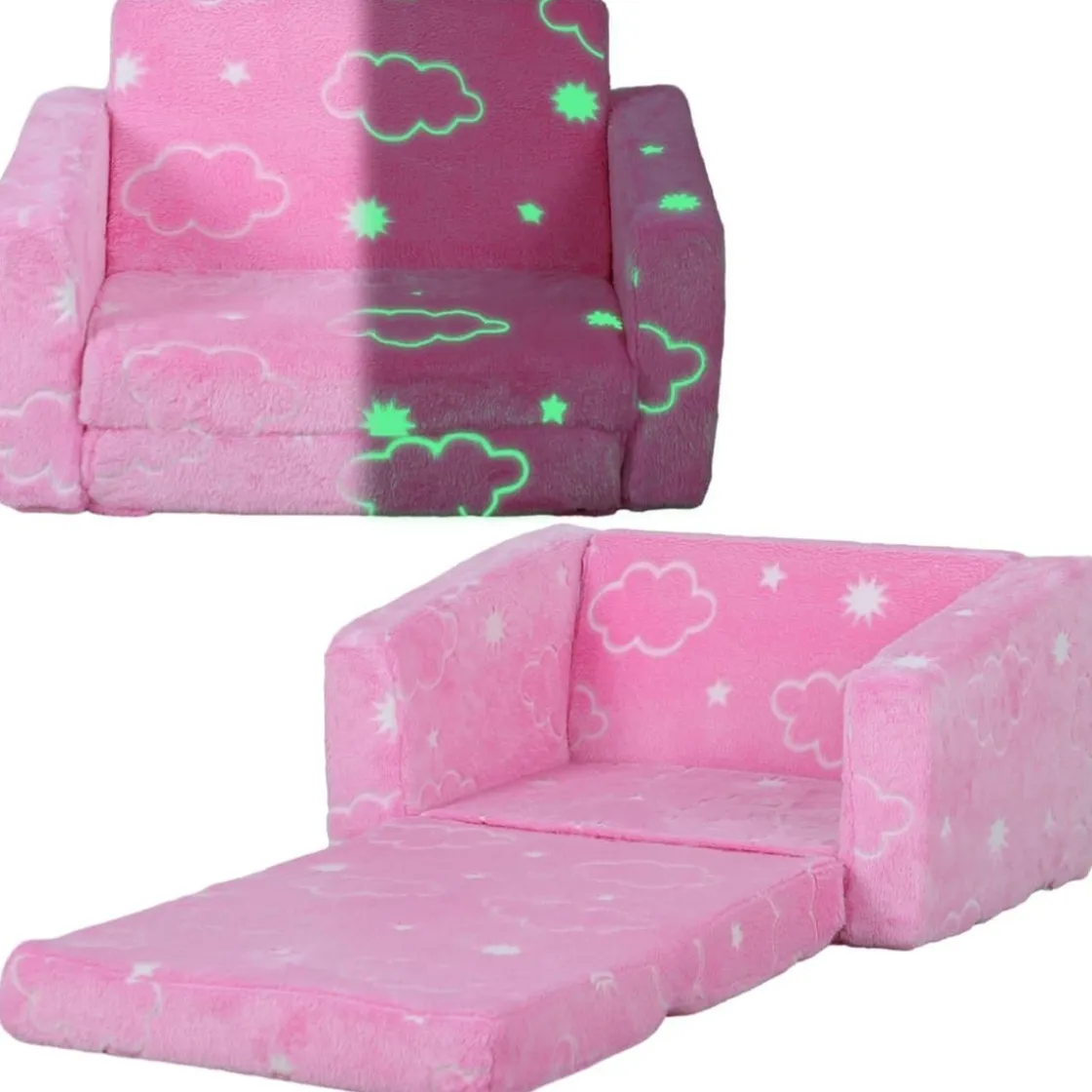 Homcom – Sillón infantil Rosa brilla en la oscuridad. Este increíble sofá infantil, con tela luminosa, encantará a los niños al transformar su habitación en un espacio mágico por la noche. Su diseño 2 en 1 permite ajustarlo fácilmente de una posición de sentado a una de descanso, ideal para siestas o momentos de relax. Hecho de espuma suave, con un respaldo amplio y reposabrazos, este sillón proporciona un excelente confort para los pequeños.