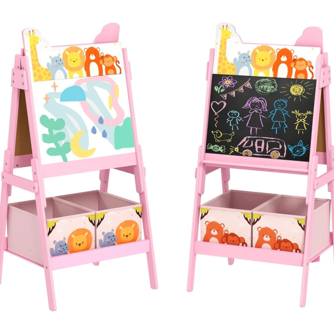 Pizarra 2 en 1 con cajas de tela Rosa
