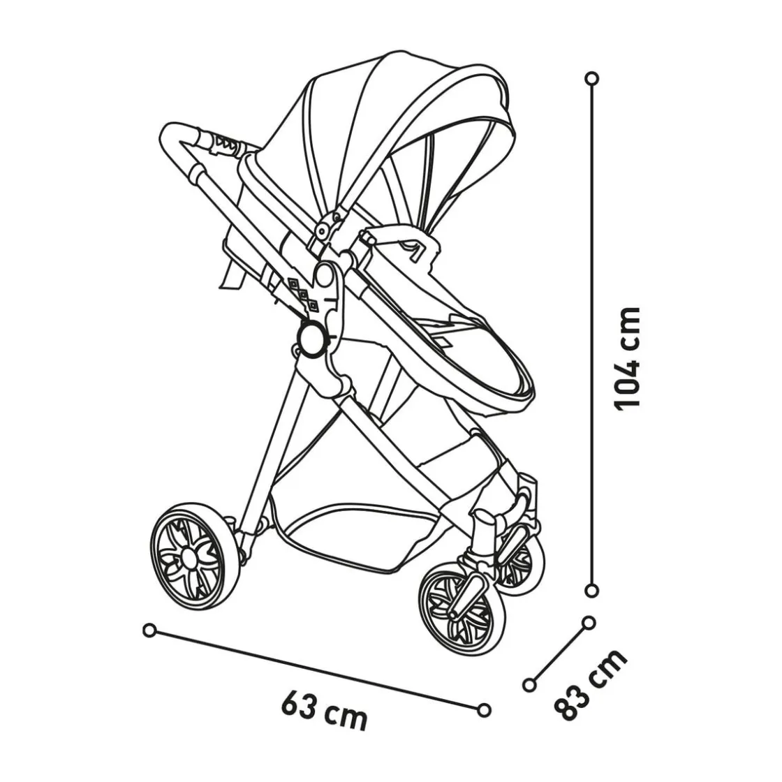 - Incluye: chasis de aluminio, asiento unitario convertible en capazo, silla de auto, cubrepiés.