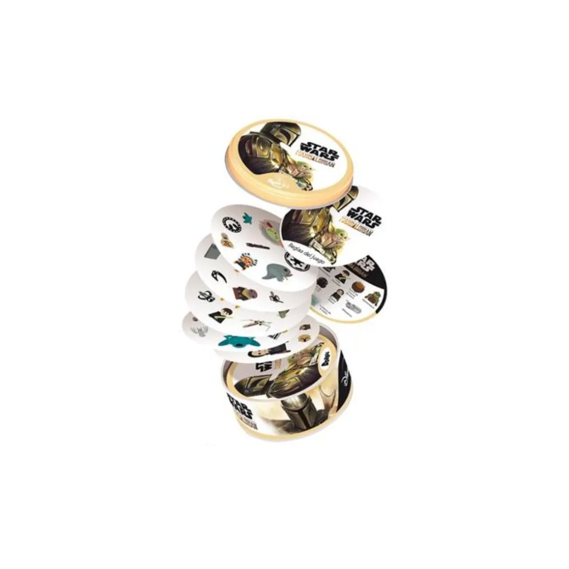 Viaja a una galaxia muy, muy lejana con este divertido juego, que mantiene toda la emoción del Dobble original, pero ahora con símbolos de la serie The Mandalorian.