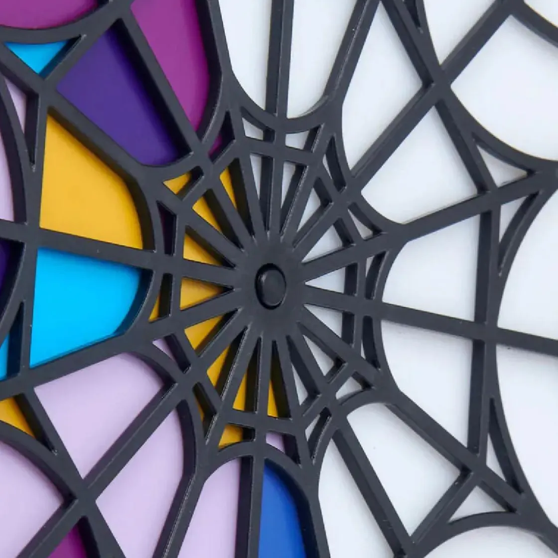 La lámpara está basada en la ventana de la habitación de Miércoles y Enid. Una mitad, la parte más colorida al estilo de Enid y la otra mitad, en blanco y negro como la oscura protagonista, Miércoles. ¡Igual que en la serie!