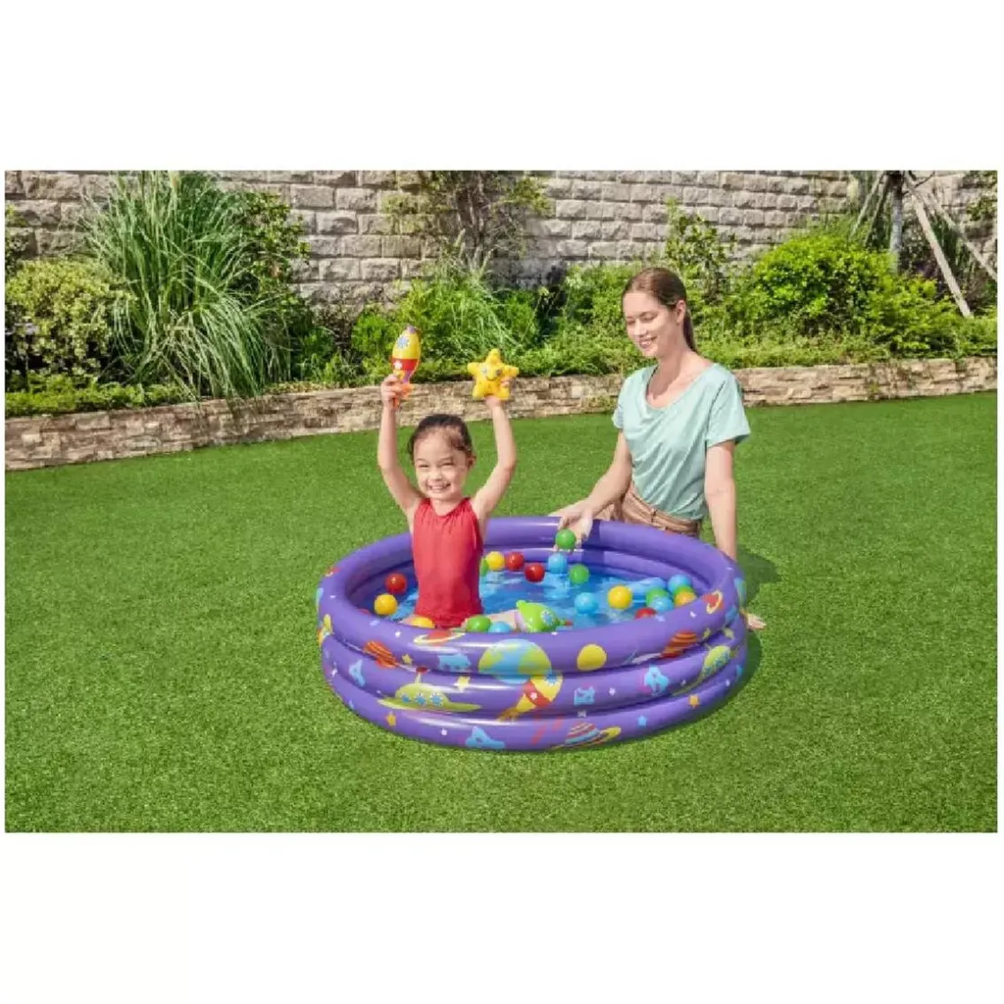 BestWay – Piscina de bolas Intergalactic Surpise, una piscina hinchable con juguetes para jugar dentro o fuera de casa.