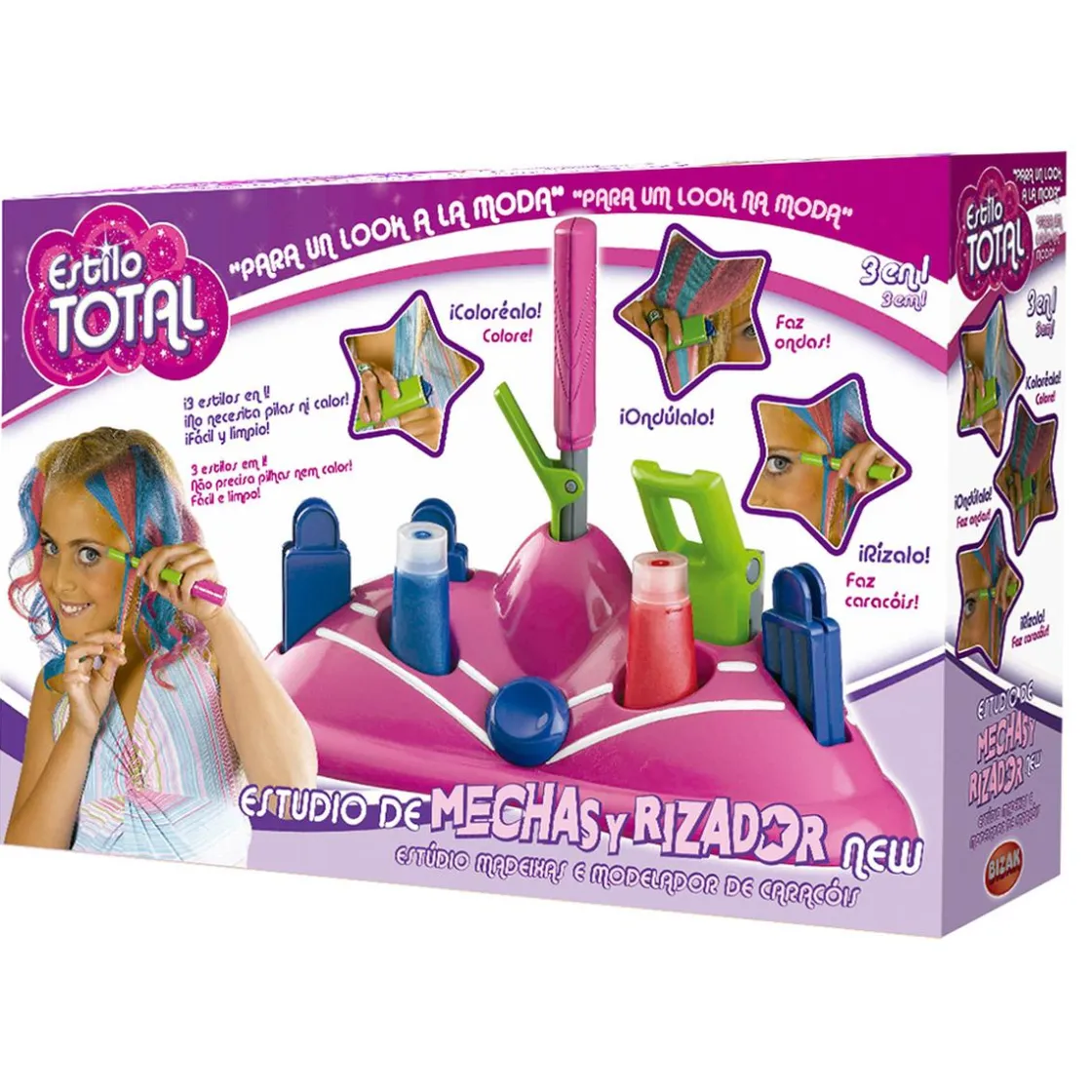 Estudio de Mechas y Rizador, un set de peluquería Estudio Total ¡para un look a la moda! Permite crear mechas de colores y rizos en el pelo. ¡3 estilos en 1! ¡Coloréalo! ¡Ondúlalo! ¡Rízalo! ¡No necesita pilas ni calor! ¡Fácil y limpio! Crea tus looks con este completo set 3 en 1. Edad recomendada: +6 años.