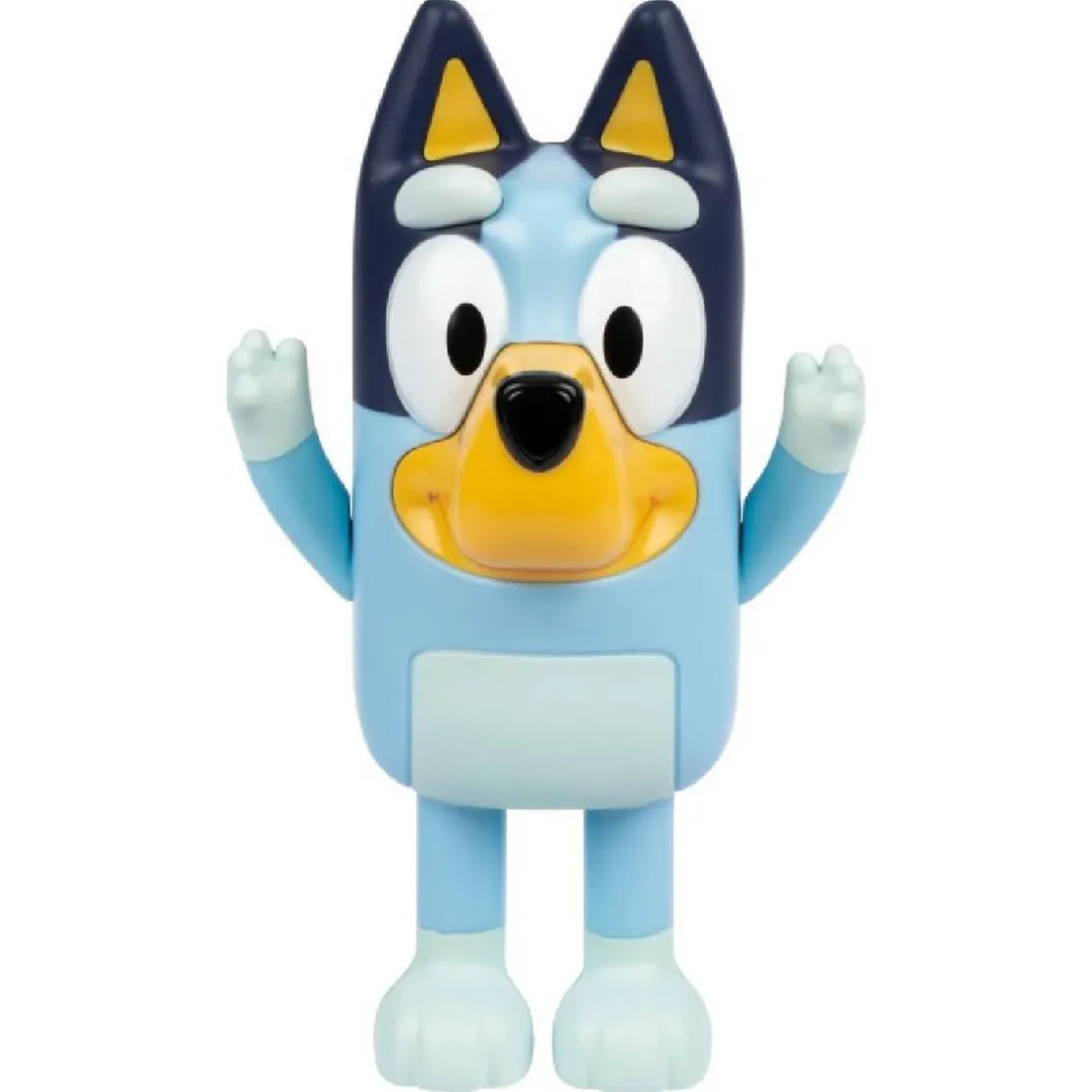 - 1 figura electrónica, articulada y resistente de Bluey, (aproximadamente 15 cm de alto) con temporizador integrado y voz. Bluey habla y se ríe cada pocos segundos para guiar la búsqueda y también el modo de baile activado al pulsar la nariz, suena la canción oficial de la serie.