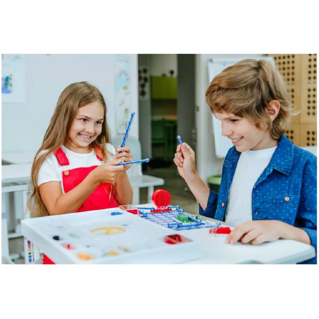 Con este kit los niños pueden construir divertidos circuitos de electricidad y ver la utilidad en la vida diaria, todos ellos con su código identificativo lo que facilita el montaje de los diferentes proyectos, además de aprender sobre física, electrónica, la manipulación de objetos pequeños y el desarrollo del pensamiento lógico.