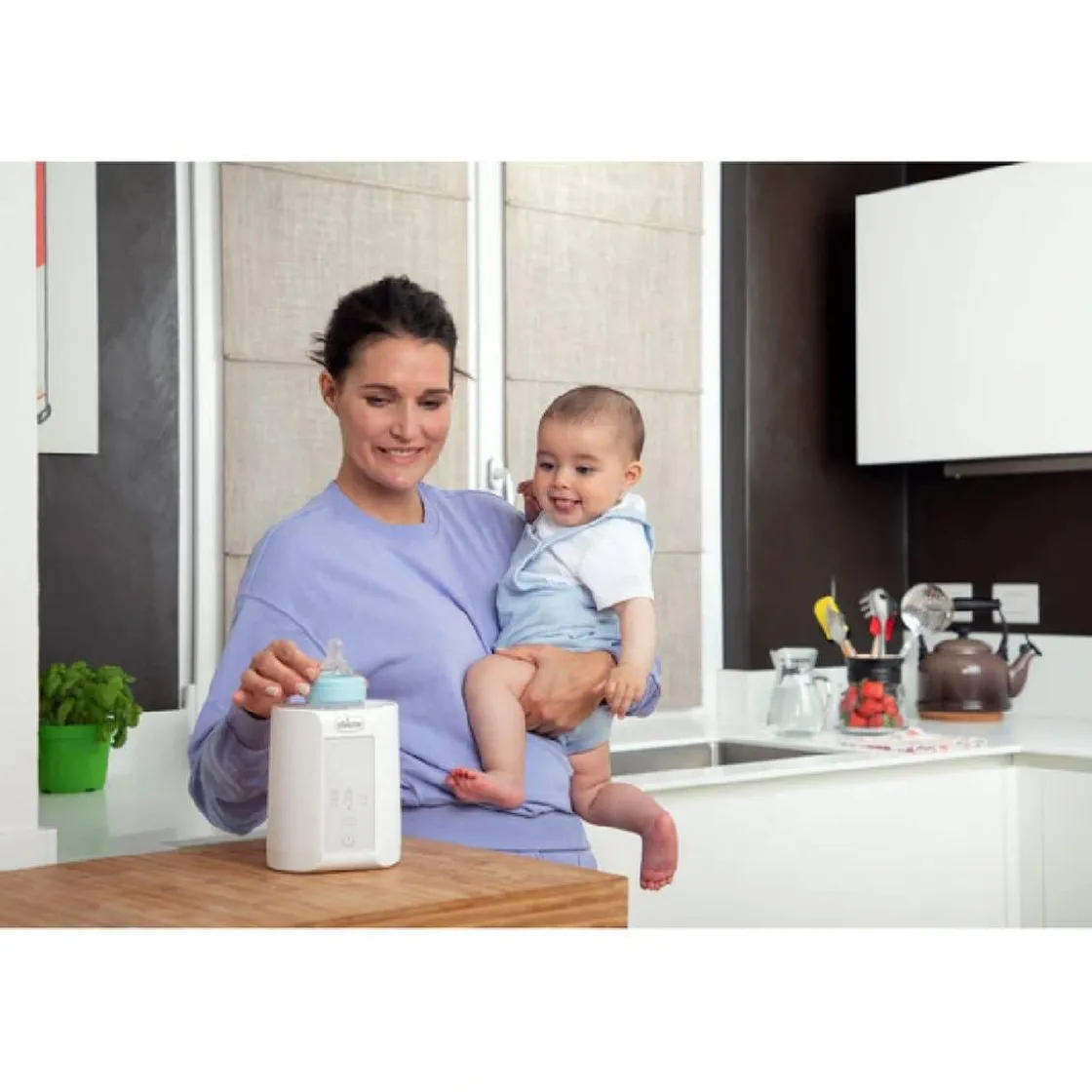 Calienta biberones casa, un calienta biberones Chicco con tres programas y apagado automático.