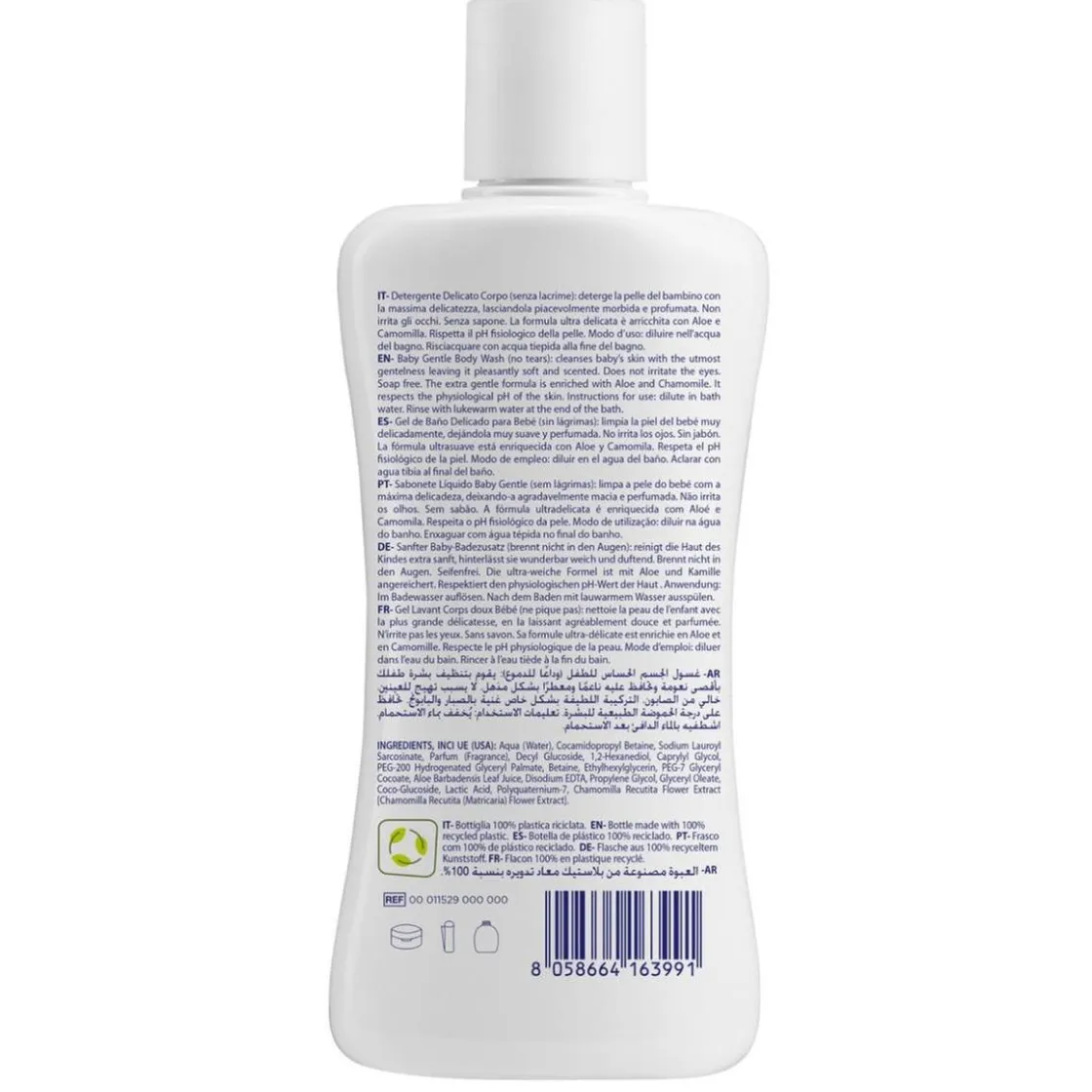 Su fórmula enriquecida con aloé vera y camomila está diseñada para calmar, hidratar y perfumar ligeramente la piel del bebé. Este gel limpia sin irritar los ojos gracias a su textura “sin lágrimas”, manteniendo el pH fisiológico de la piel y ayudando a conservar su barrera protectora.