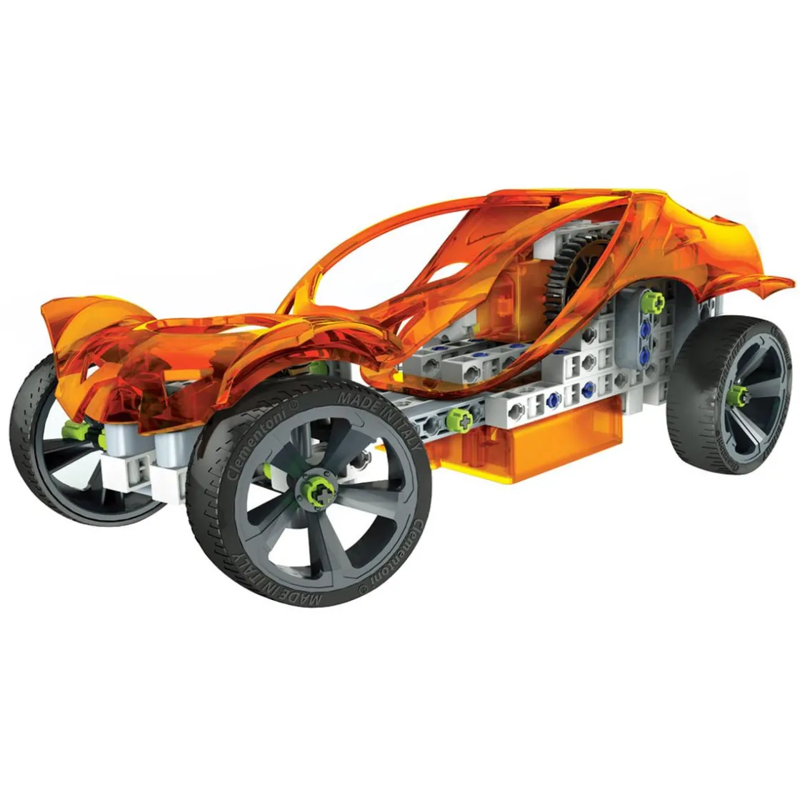 Laboratorio de Mecánica, un completísimo kit con más de 250 componentes para crear más de 50 construcciones incrementando el nivel de dificultad. Es posible crear un helicóptero, una grúa eléctrica, y un coche con motor eléctrico en el cual la interacción manual es posible gracias a la transmisión y a las ruedas direccionales. Incluye un manual ilustrado con todas las etapas del montaje, que son completamente seguras. Un laboratorio con el que los niños podrán divertirse mientras aprenden los conceptos fundamentales de la mecánica y la ingeniería. El diseño, el concepto y la fabricación son italianos. Edad recomendada: +8 años.