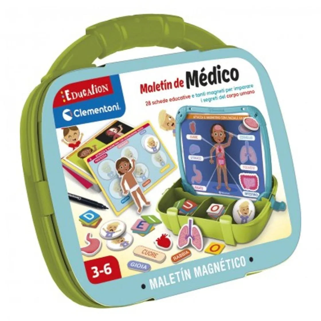 El «Clementoni – Maletín magnético de médico» es un juego ideal para los pequeños que sueñan con ser médicos, ofreciendo una forma divertida e interactiva de aprender sobre el cuerpo humano. Los niños pueden explorar las distintas partes del cuerpo usando piezas magnéticas, lo que hace que este proceso educativo sea mucho más visible y agradable. Además, el maletín incluye un folleto educativo que guía a los niños en su camino de aprendizaje, ayudándoles a entender mejor cómo funciona el cuerpo.
