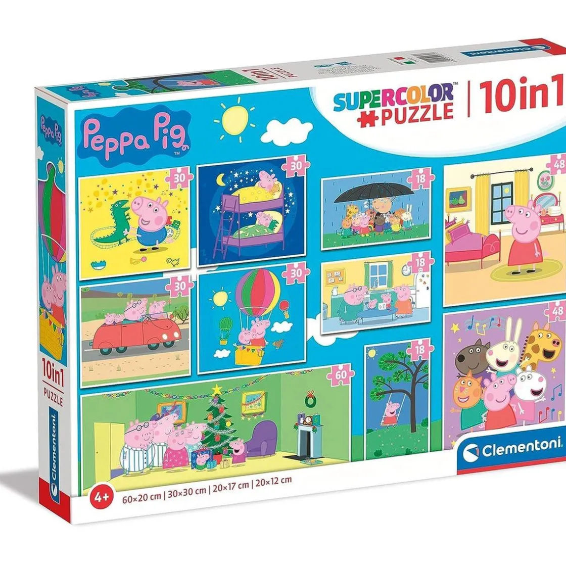 Clementoni – Peppa Pig – Puzzle Infantil Multicolor 10 en 1, de distinto tamaño para montar progresivamente ㅤ