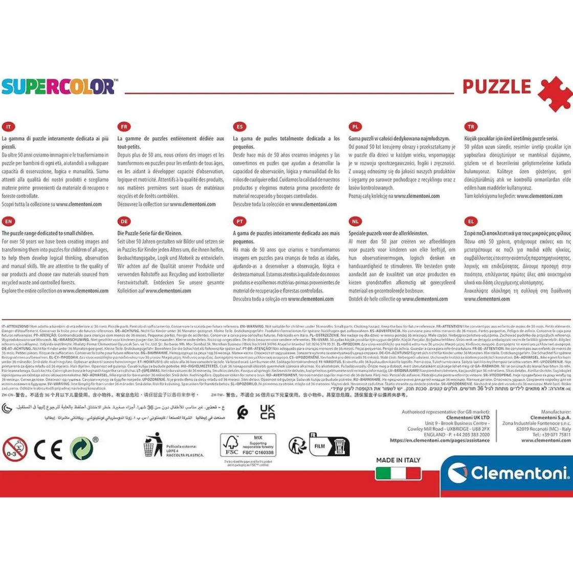 Por último, es importante resaltar que este producto está fabricado en Italia, por lo que puedes estar seguro de su calidad y durabilidad. Además, Clementoni ofrece un servicio de «piezas perdidas», para que, en caso de perder alguna pieza, puedas contactar con ellos y solicitar una nueva.