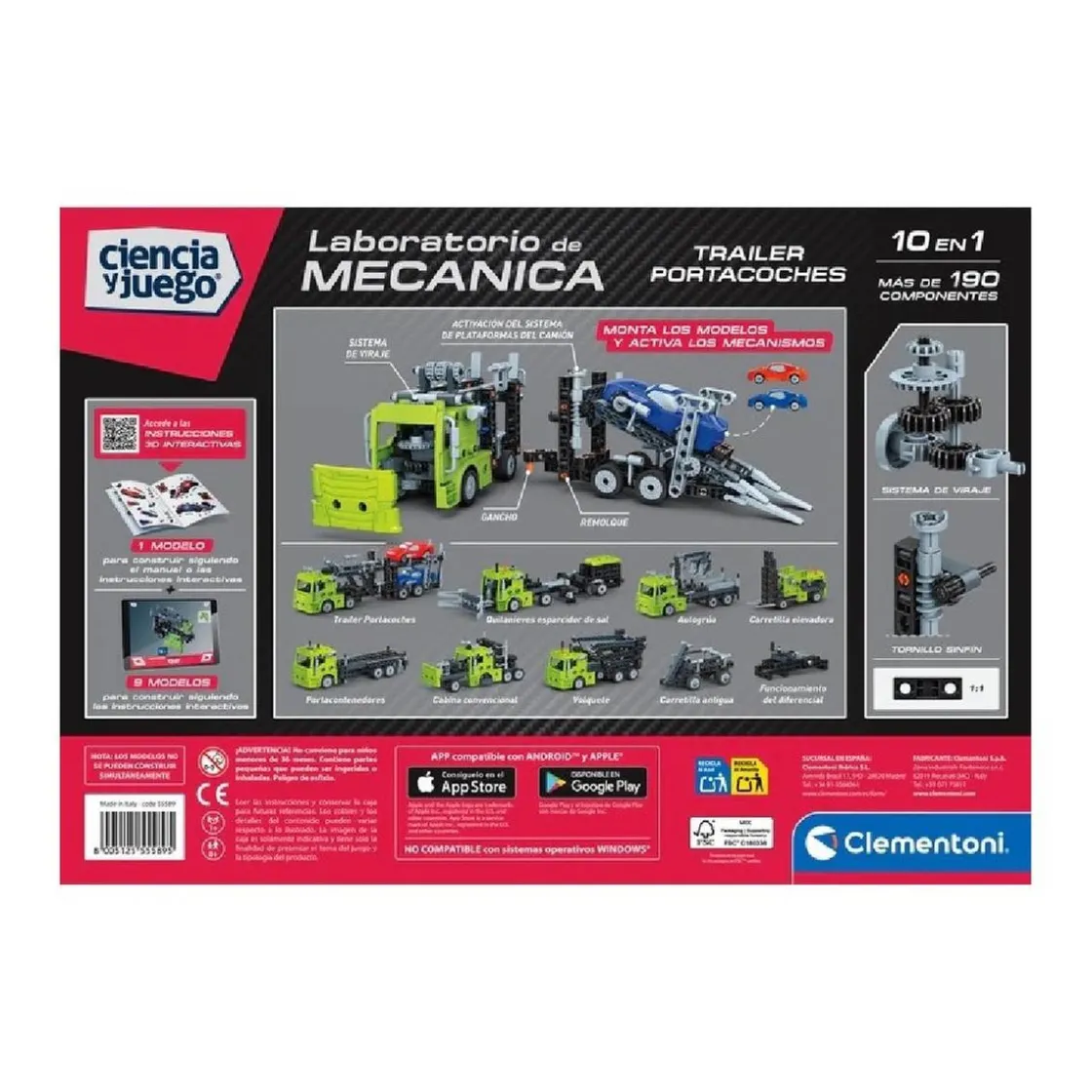 Al ensamblar los diferentes componentes, los niños pueden poner a prueba sus ideas, experimentar y comprobar por sí mismos si las soluciones que encuentran son correctas o si pueden mejorar el diseño. Es una excelente manera de aprender sobre mecánica y construcción de forma práctica y entretenida. Este set ha sido fabricado en Italia.