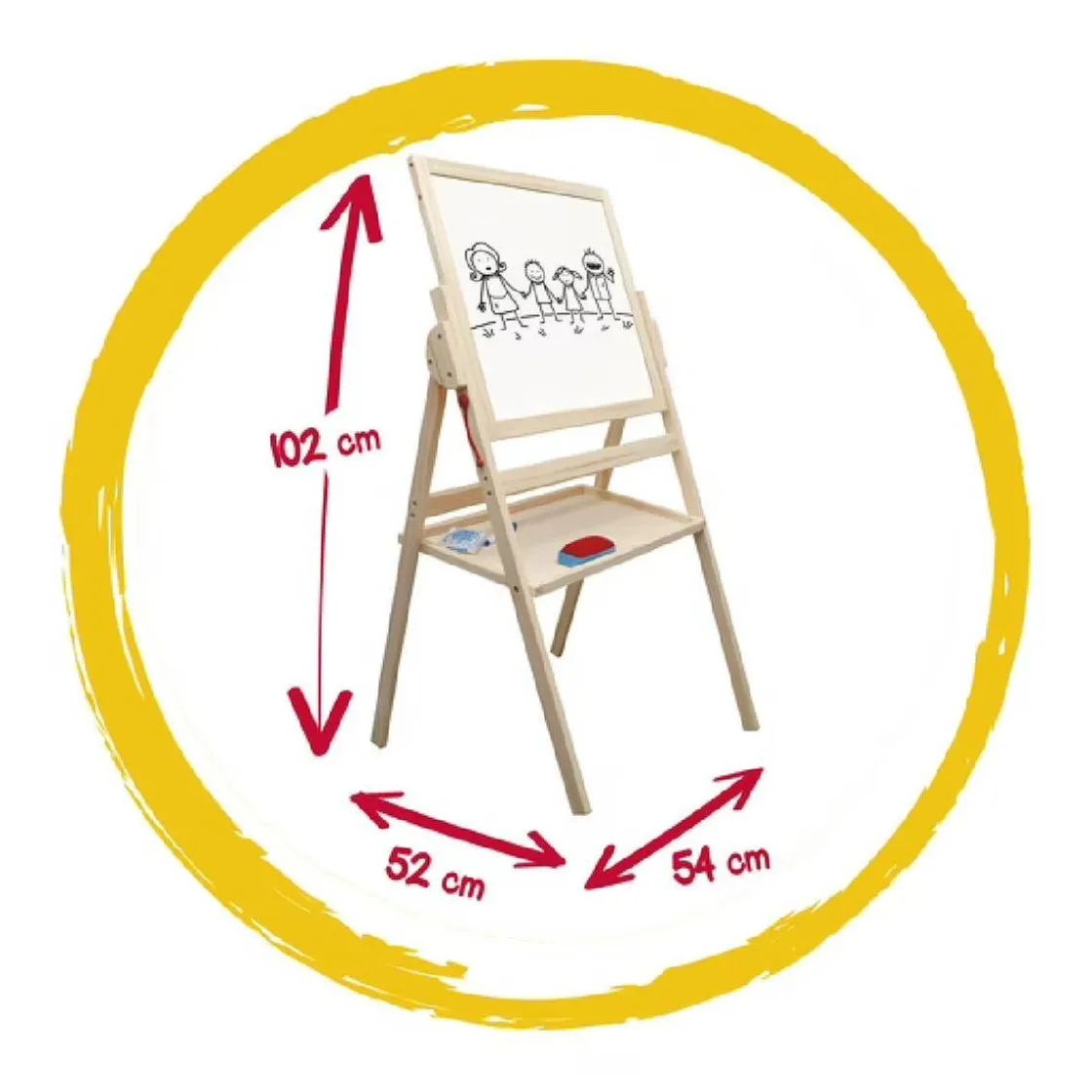 Esta pizarra de madera natural tiene doble cara para aumentar la creatividad de los más pequeños: