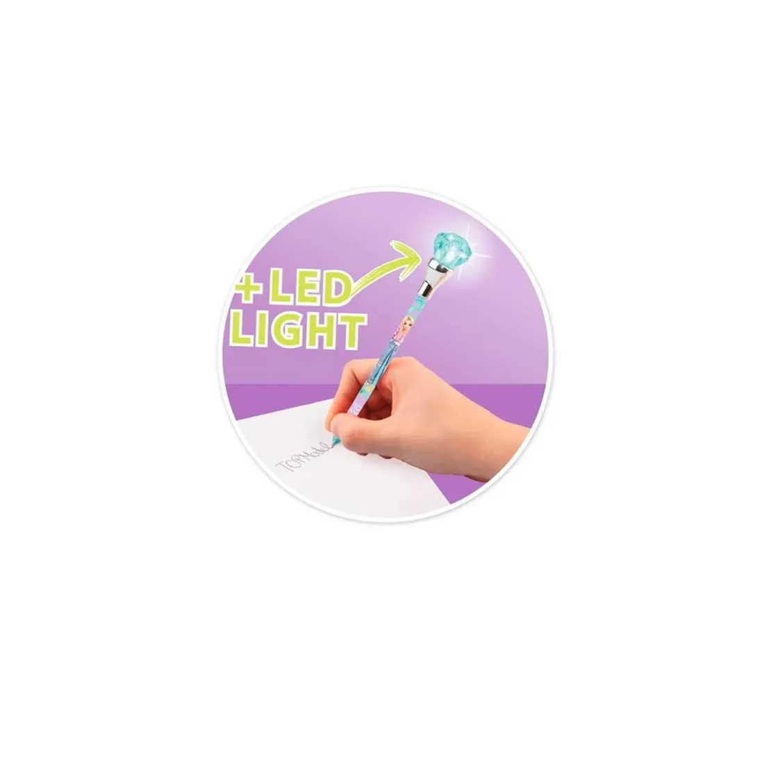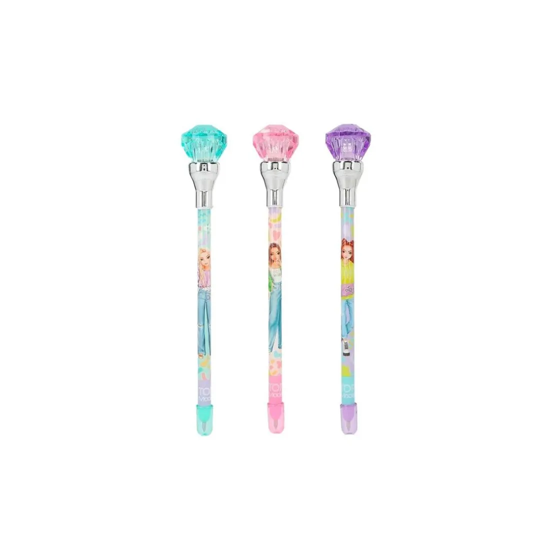 El Bolígrafo con luz brillante (Varios modelos) es perfecto para quienes quieren escribir de manera brillante y única. Este bolígrafo no es solo una herramienta de escritura: es una experiencia iluminadora. Al presionar la mina para escribir, el diamante en la parte superior del bolígrafo se enciende, creando un efecto visual impresionante. Además, el cuerpo del bolígrafo está decorado con diseños de la famosa colección Top Model, lo que lo hace tanto estiloso como divertido.