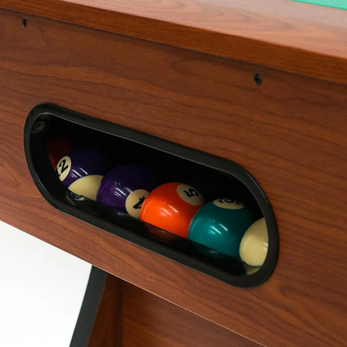 Incluye todos los accesorios para empezar a jugar al billar: 1 Juego de bolas (Diámetro 5,72 cm), 2 Tacos (144,78 cm), Triángulo, Tiza y Cepillo. Dimensiones: 211,5 x 120,5 x 78 cm. Peso 103 kg.