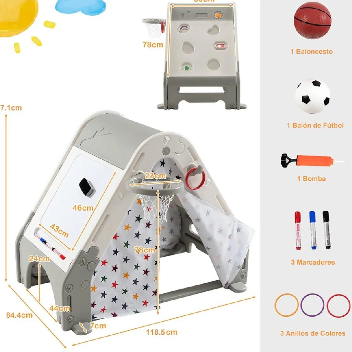 Actividades interactivas para el desarrollo: Más que una simple tienda de campaña, este producto viene equipado con una variedad de actividades interactivas que estimulan el desarrollo físico y cognitivo de los niños.
