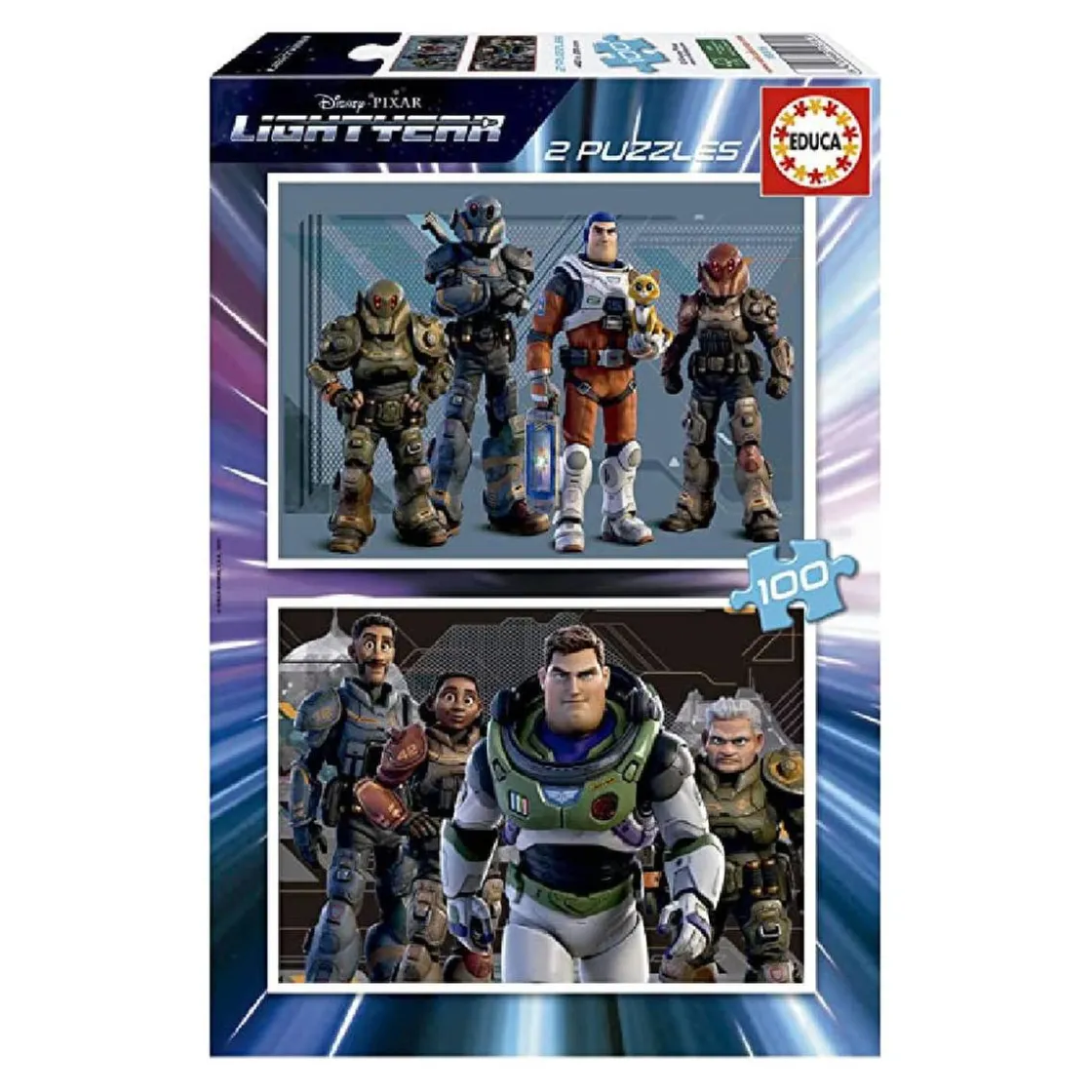 Educa Borrás – Lightyear – Pack 2 puzzles 100 piezas, un pack de 2 puzzles de 100 piezas cada uno. Una buena elección como entretenimiento, y a la vez, para ejercitar la memoria, concentración y la atención de los niños.