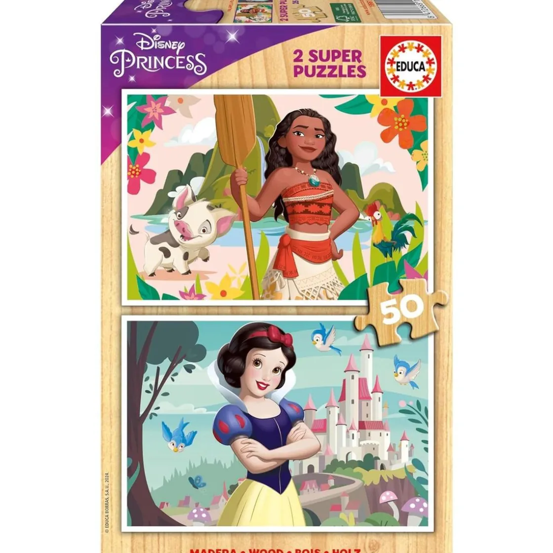 Educa Borras – Princesas Disney – Puzzle Doble Princesas Disney de Madera 50 Piezas ㅤ