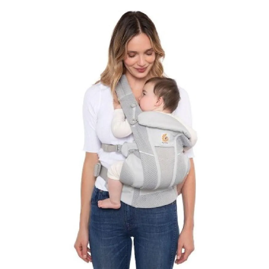 Confeccionada con tejido SoftFlex™ Mesh, permite un flujo de aire óptimo que mantiene tanto al bebé como al portador frescos y cómodos durante todo el día.