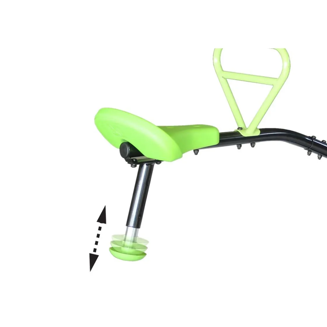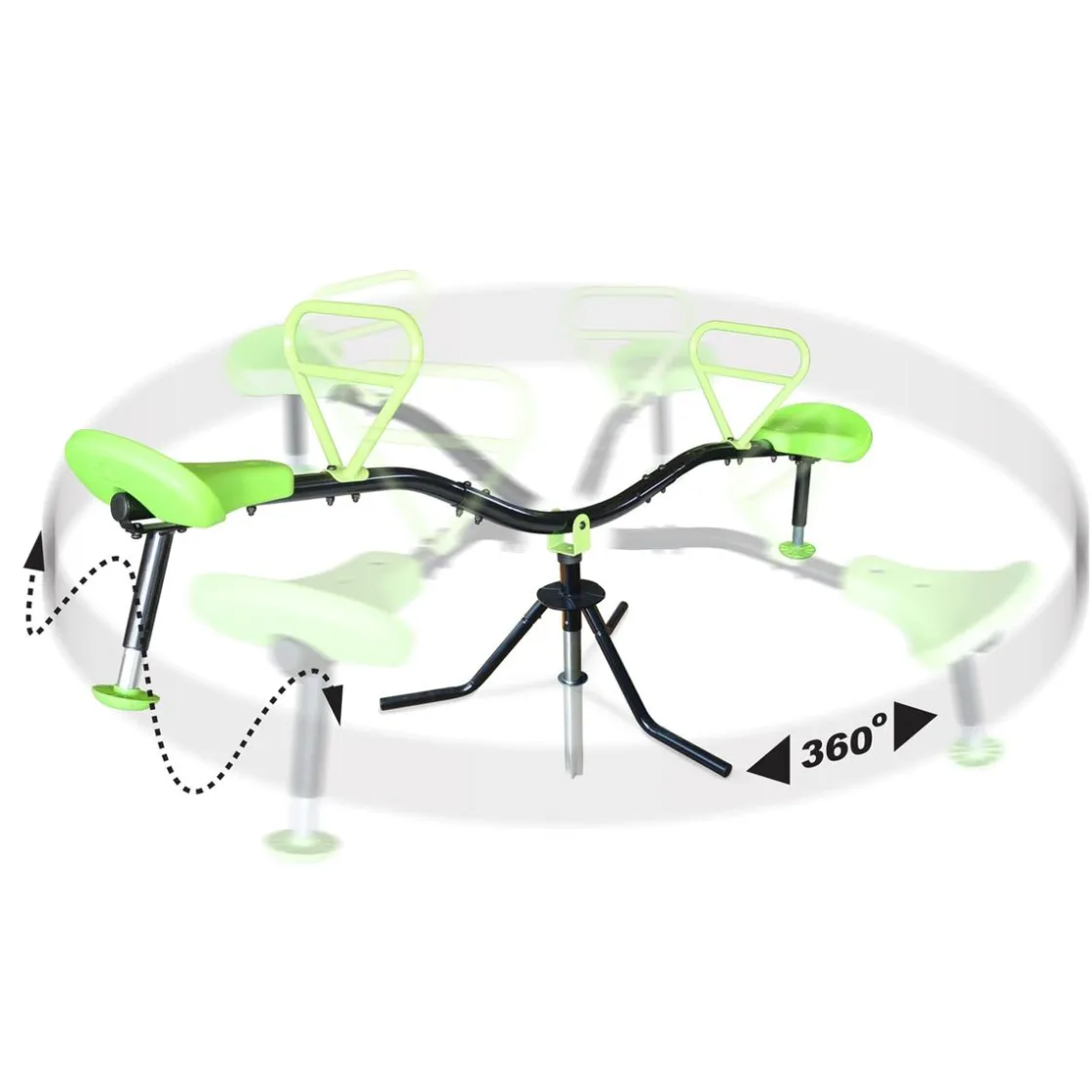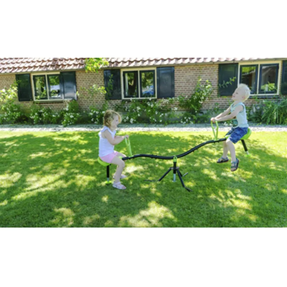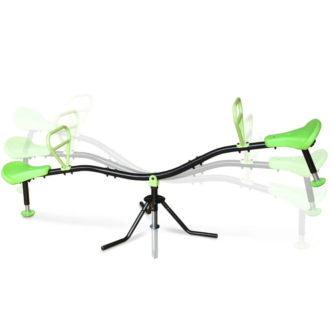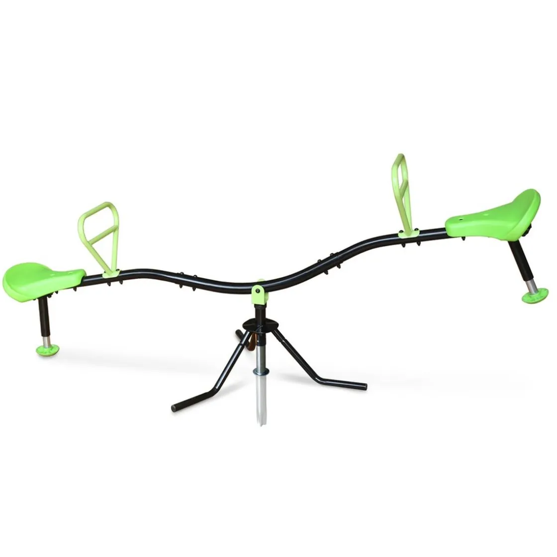 Exit Balancín giratorio Spinner. ¡El balancín giratorio Exit Spinner no es simplemente un balancín! Este balancín negro y verde no solo se mueve hacia arriba y hacia abajo, sino que también puede girar. ¡Y debajo del asiento del balancín hay un resorte adicional para disfrutar aún más del juego!