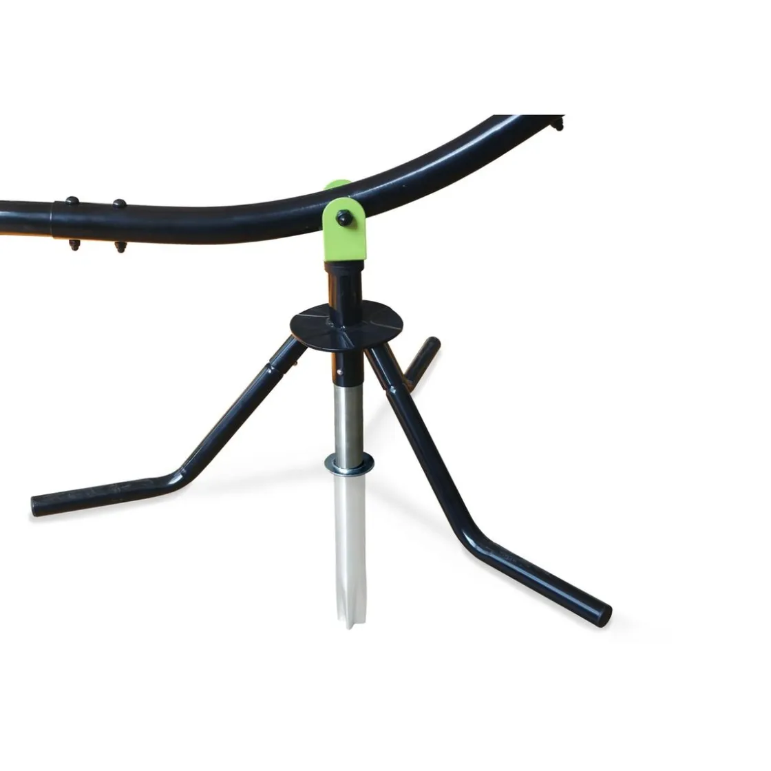 El balancín Exit Spinner está sólidamente anclado en el suelo gracias al innovador y fácil sistema de anclaje. El balancín se instala en el suelo usando un ancla de tierra y un tubo de ancla. Y si desea cortar el césped, puede levantar fácilmente el balancín del suelo y luego devolverlo a su lugar.