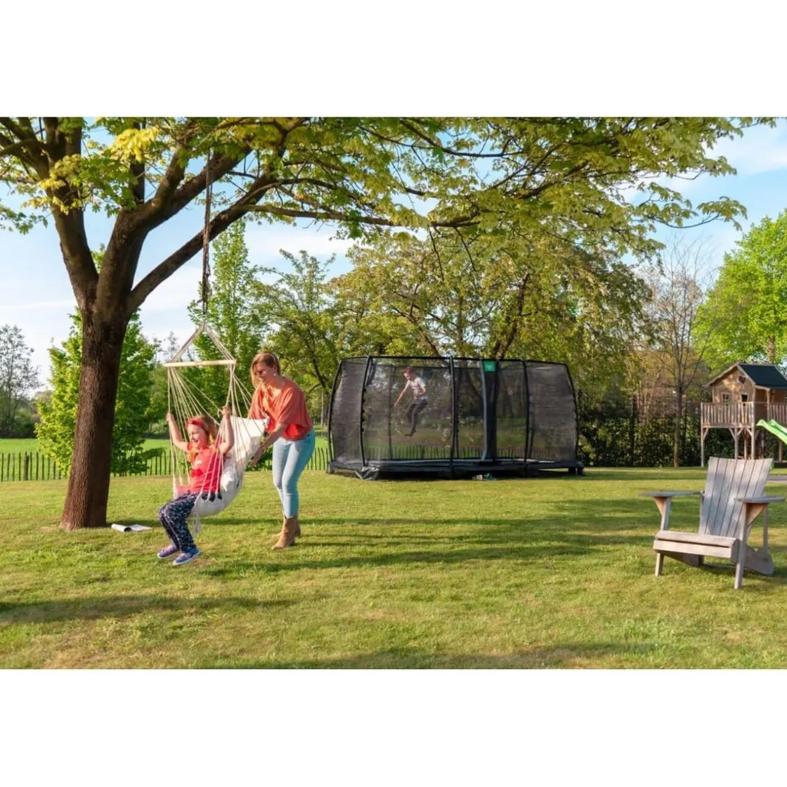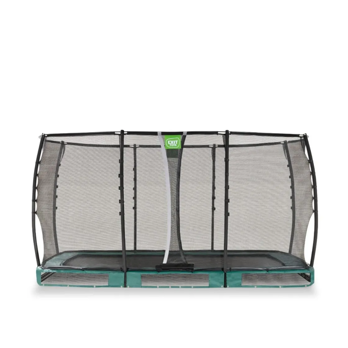 Exit – Cama elástica de suelo Allure Premium 214 x 366 cm verde, un trampolín para ser semienterrado con borde protector acolchado y red de seguridad Premium.