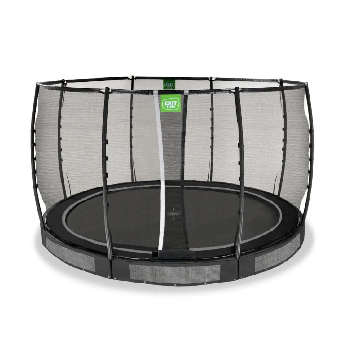 Exit – Cama elástica de suelo Allure Premium 366 cm negro, un trampolín para ser semienterrado con borde protector acolchado y red de seguridad Premium.