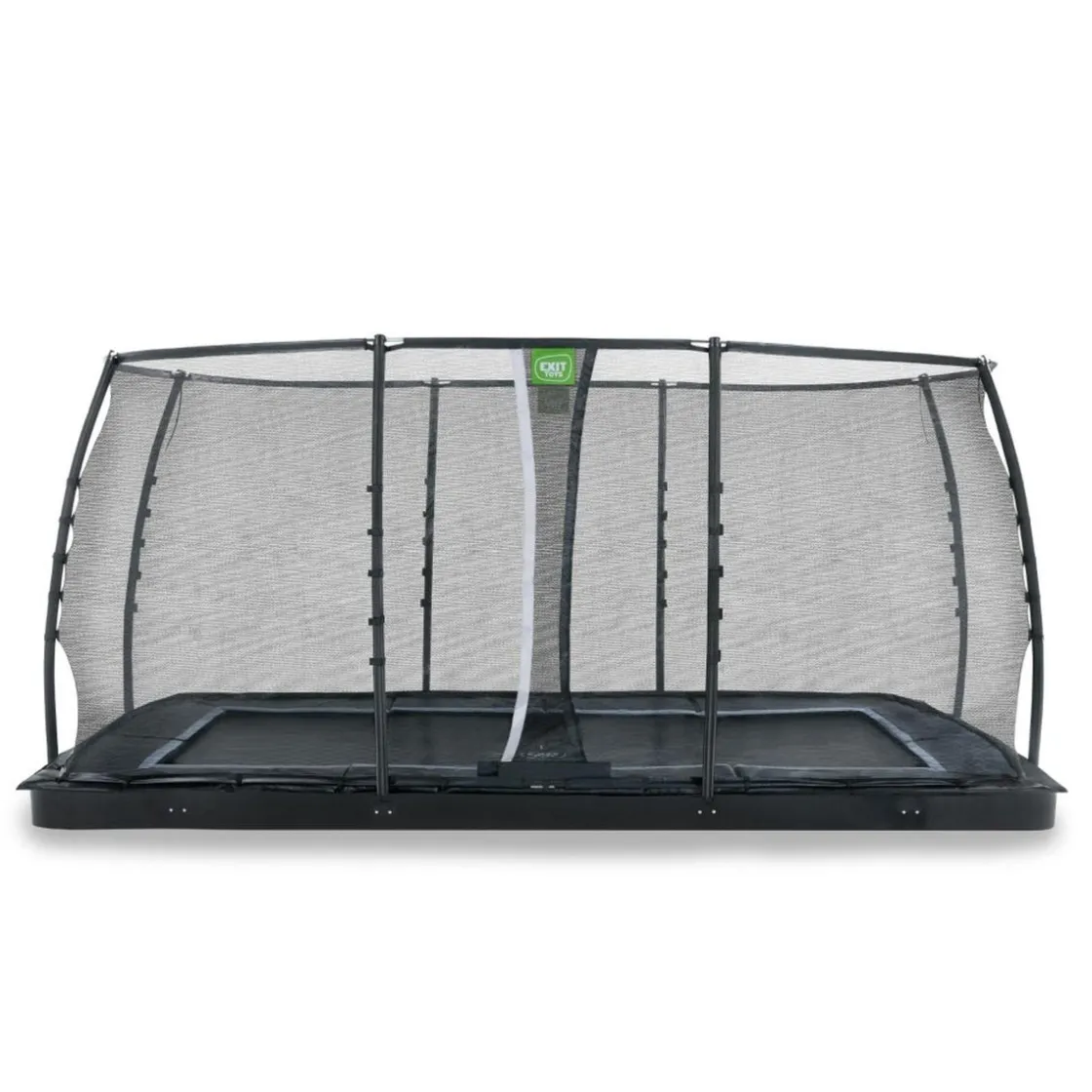 Exit – Cama elástica de suelo Dynamic 275 x 458 cm negro con red de seguridad, un trampolín rectangular a nivel del suelo de color negro mate con calidad superior.
