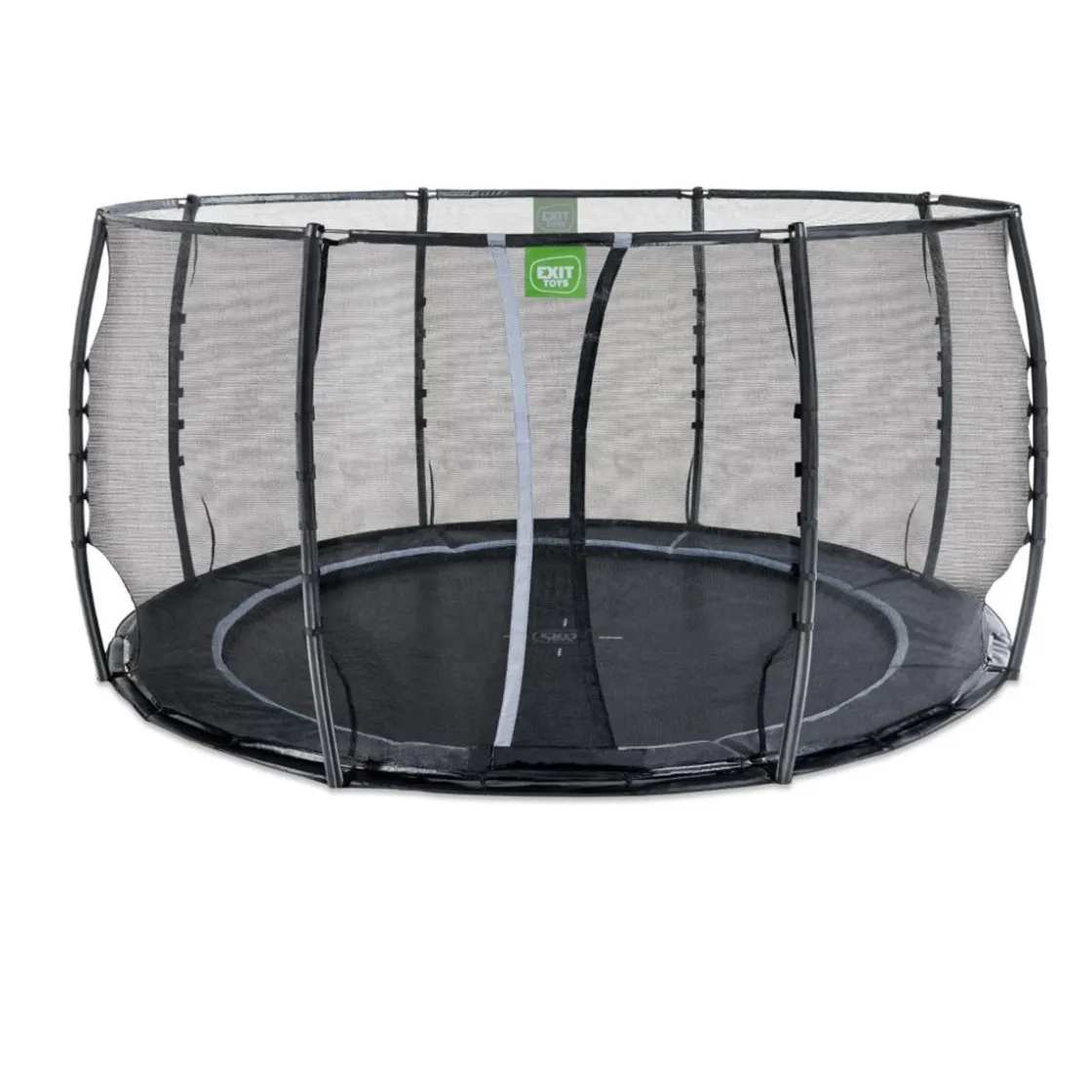 Exit – Cama elástica de suelo Dynamic 427 cm negro con red de seguridad, un trampolín redondo a nivel del suelo de color negro mate con calidad superior.