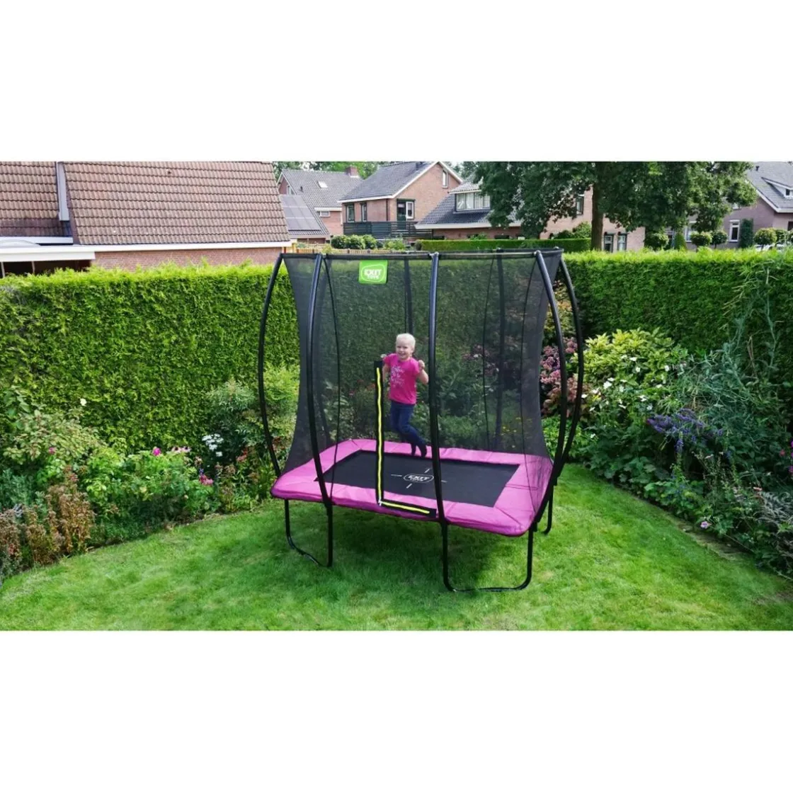 Exit – Cama elástica Silhouette rectangular rosa 153 cm, cama elástica rosa rectangular de 153 x 214 cm.