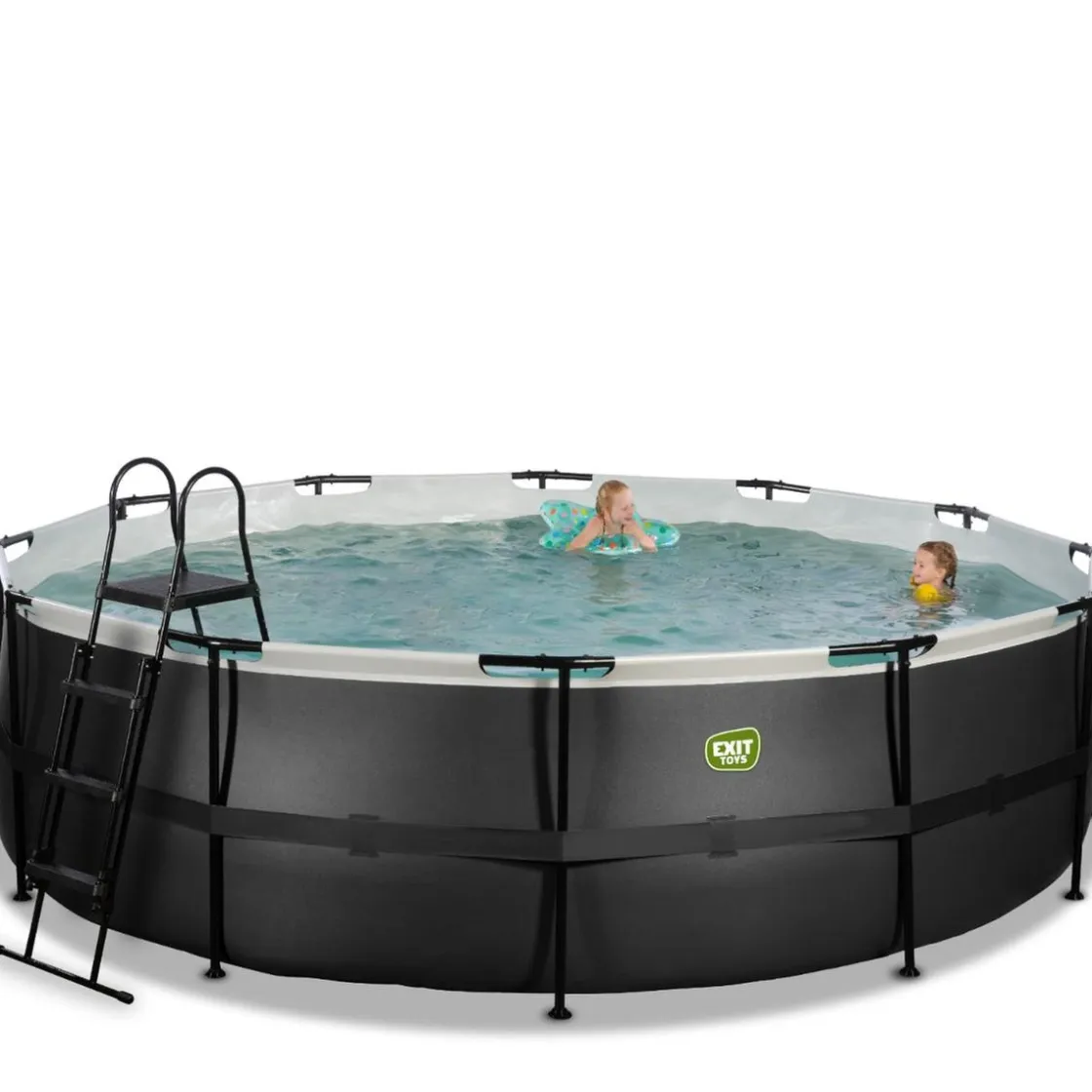 Exit – Piscina Black Leather diámetro 488 x 122 cm con filtro de cartucho, una piscina redonda con efecto cuero negro.
