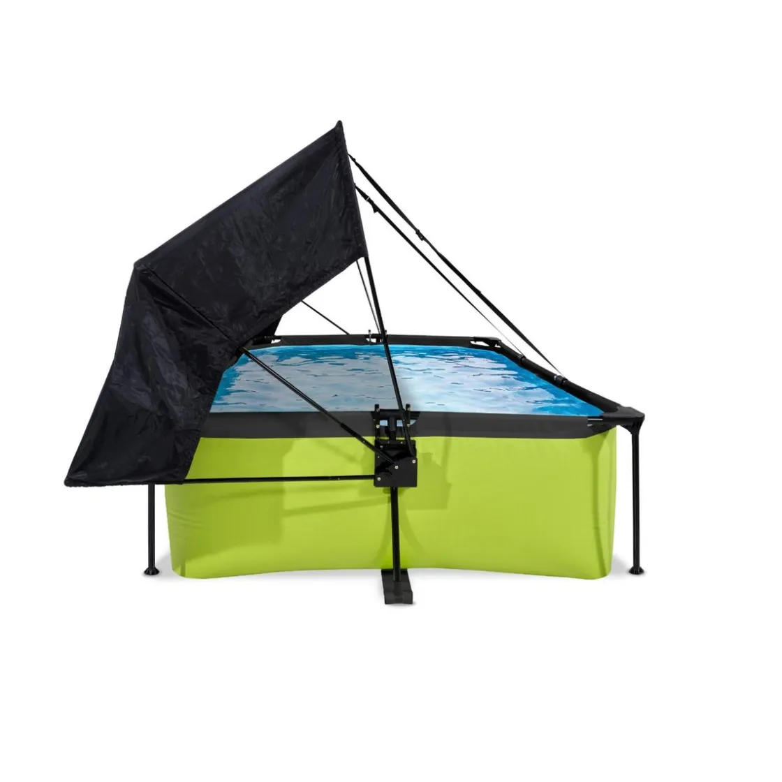 Exit – Piscina Lime verde 220 x 150 x 65 cm con filtro y toldo negro, una piscina rectangular de color verde lima que se integra perfectamente en tu jardín.