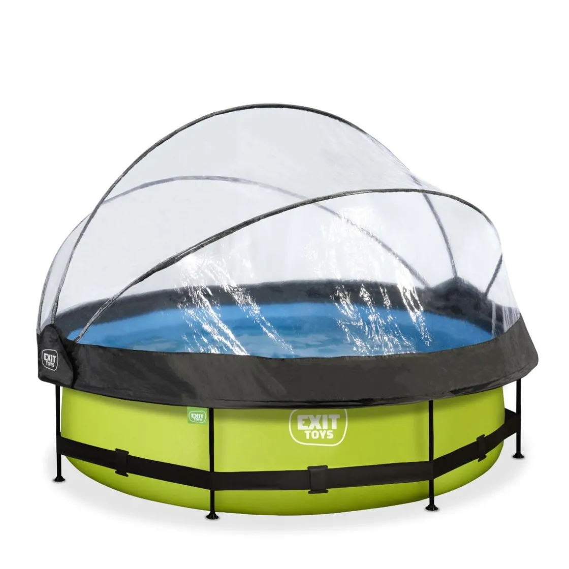 Exit – Piscina Lime verde diámetro 300 x 76 cm con filtro y cúpula transparente, una piscina redonda de color verde lima que se integra perfectamente en tu jardín.