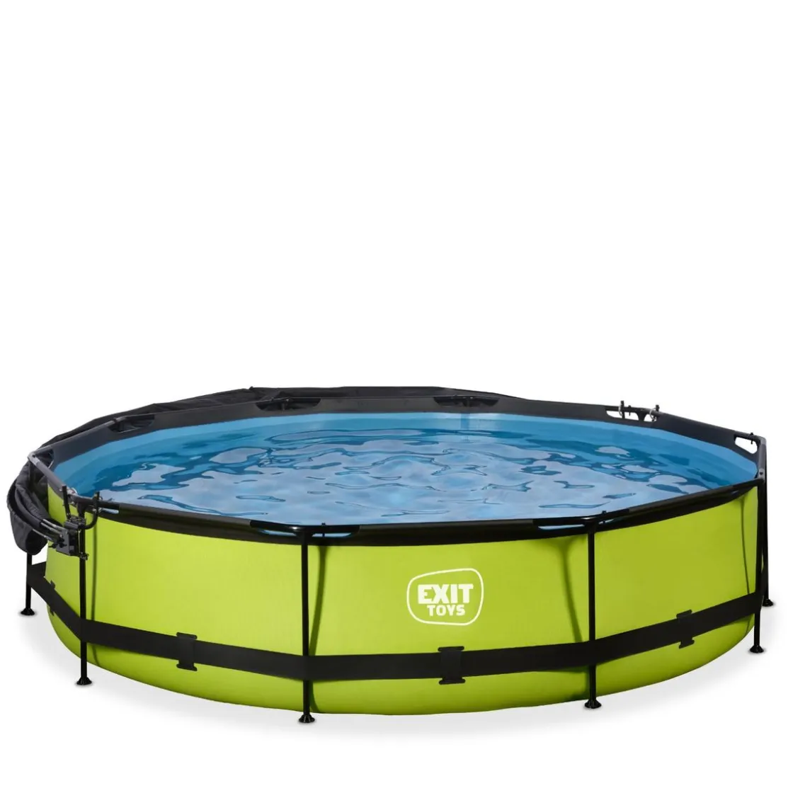 Exit – Piscina Lime verde diámetro 360 x 76 cm con filtro y toldo negro, una piscina redonda de color verde lima que se integra perfectamente en tu jardín.