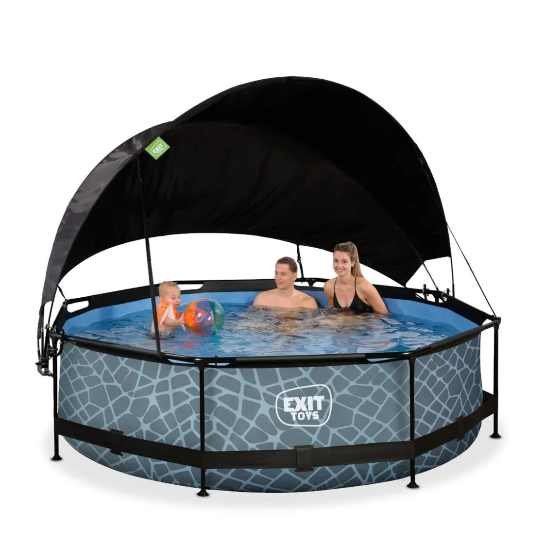 El toldo único de EXIT Toys ofrece una protección óptima contra el sol. Gracias al mecanismo de plegado fácil de usar, creará sombra parcial o total en la piscina en poco tiempo, de modo que incluso cuando el sol está realmente alto, podrás nadar sin problemas. Las bandas ajustables permiten mover el toldo según la posición del sol y asegurarlo a cualquier altura deseada. El toldo tiene un elegante diseño negro con un acabado de alta calidad.