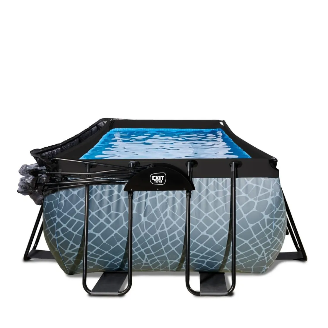 Exit – Piscina Stone gris 540 x 250 x 122 cm con filtro de arena y cúpula, una piscina rectangular con efecto piedra de color gris con cúpula.