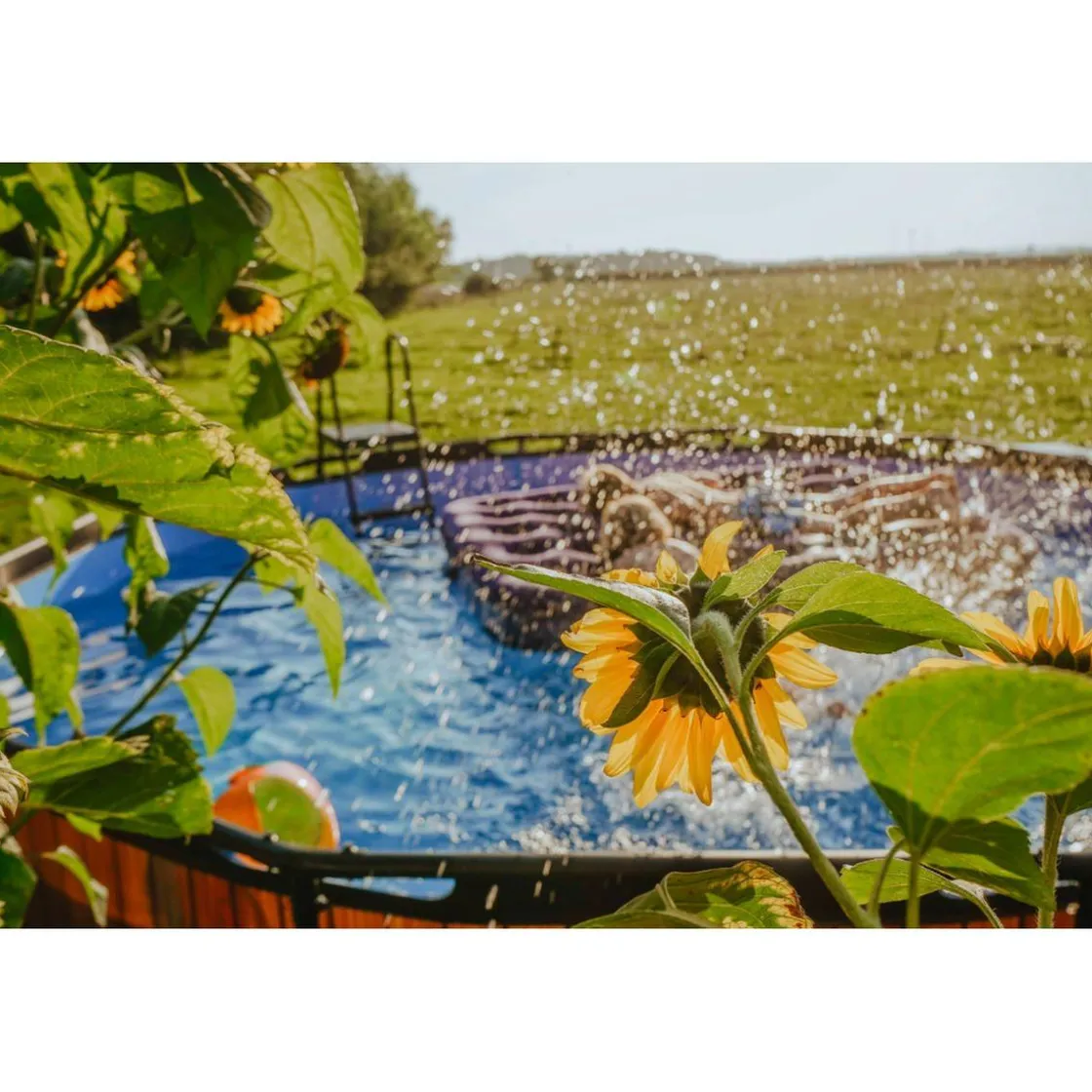 La piscina viene de serie con una bomba de filtro de arena y una escalera de piscina, con la que puede entrar y salir de la piscina de forma segura.