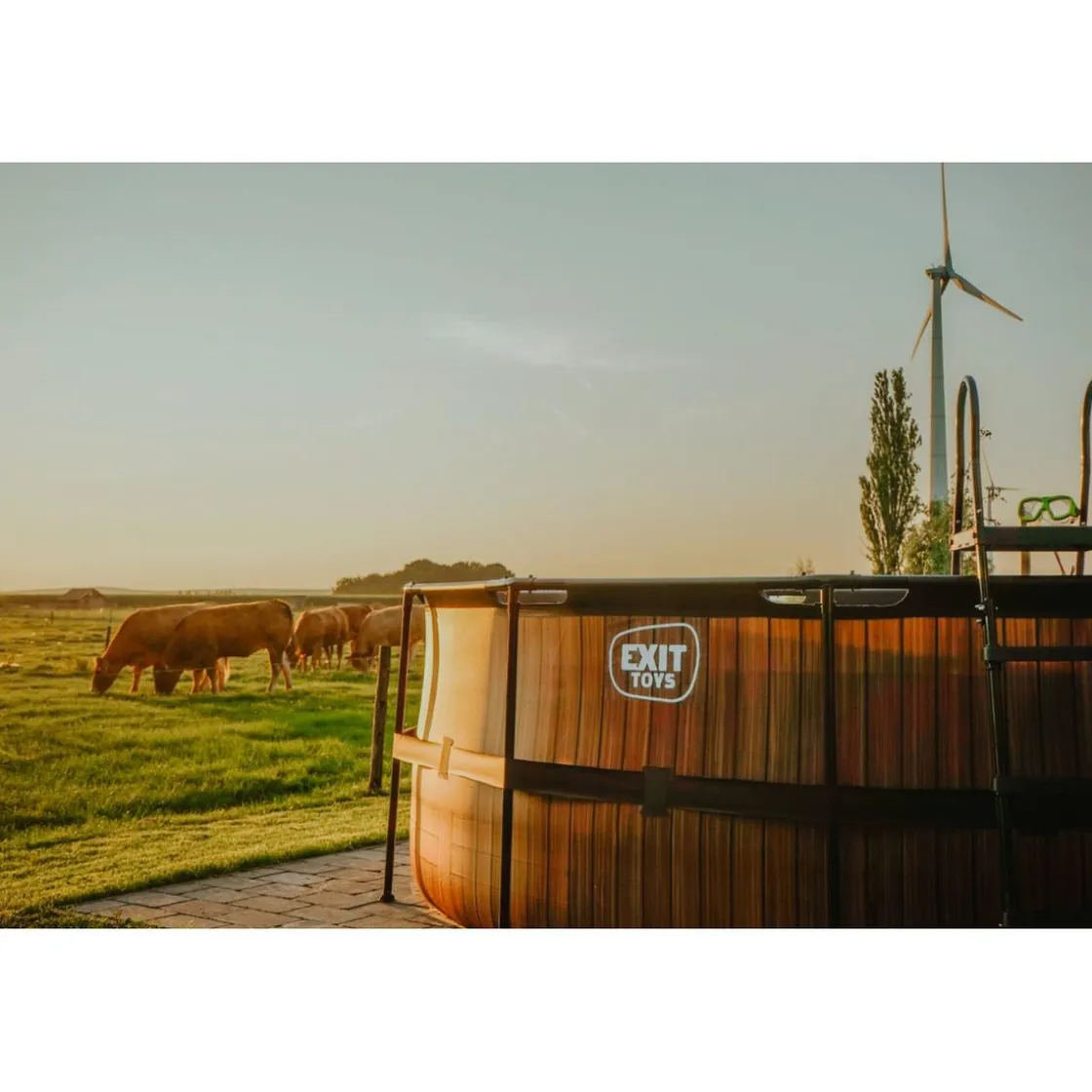 Exit – Piscina Wood efecto madera diámetro 427 x 122 cm con filtro de arena, una piscina de marco redondo con aspecto de madera.