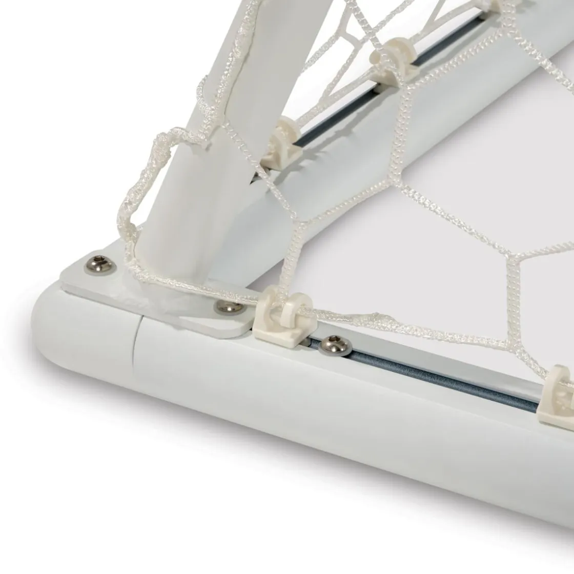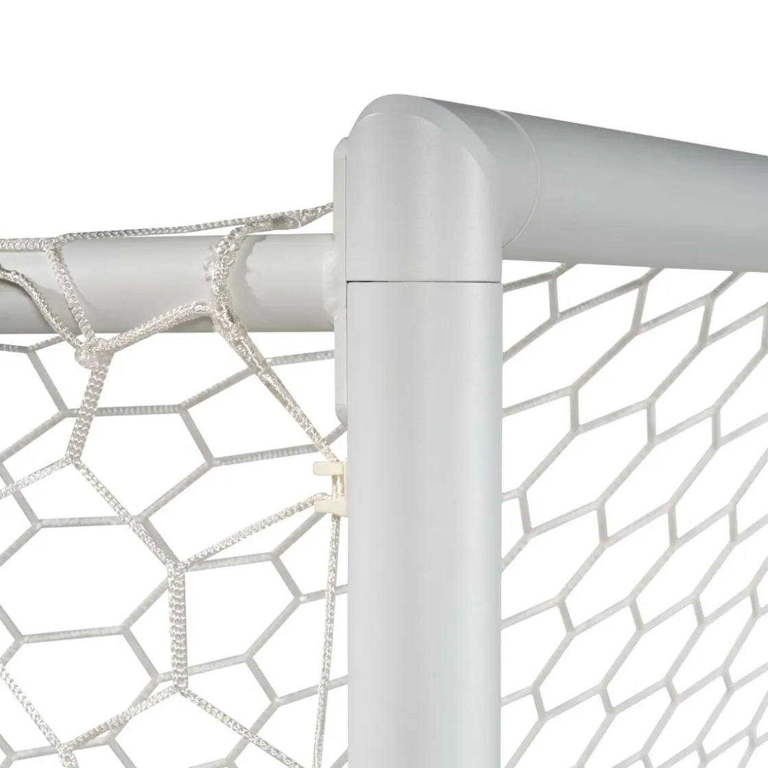 La portería se puede montar en un abrir y cerrar de ojos. La red fuerte y sostenible tiene mallas hexagonales: una característica típica de una red de portería profesional. Gracias a una construcción inteligente, la red está perfectamente integrada en el marco, asegurando que la pelota no pueda pasar entre el marco y la red. El material de montaje con el que la red está asegurada en el marco está hecho de acero a prueba de óxido. Debido a esto, estas piezas son altamente resistentes a todas las condiciones climáticas y el óxido no tiene oportunidad.