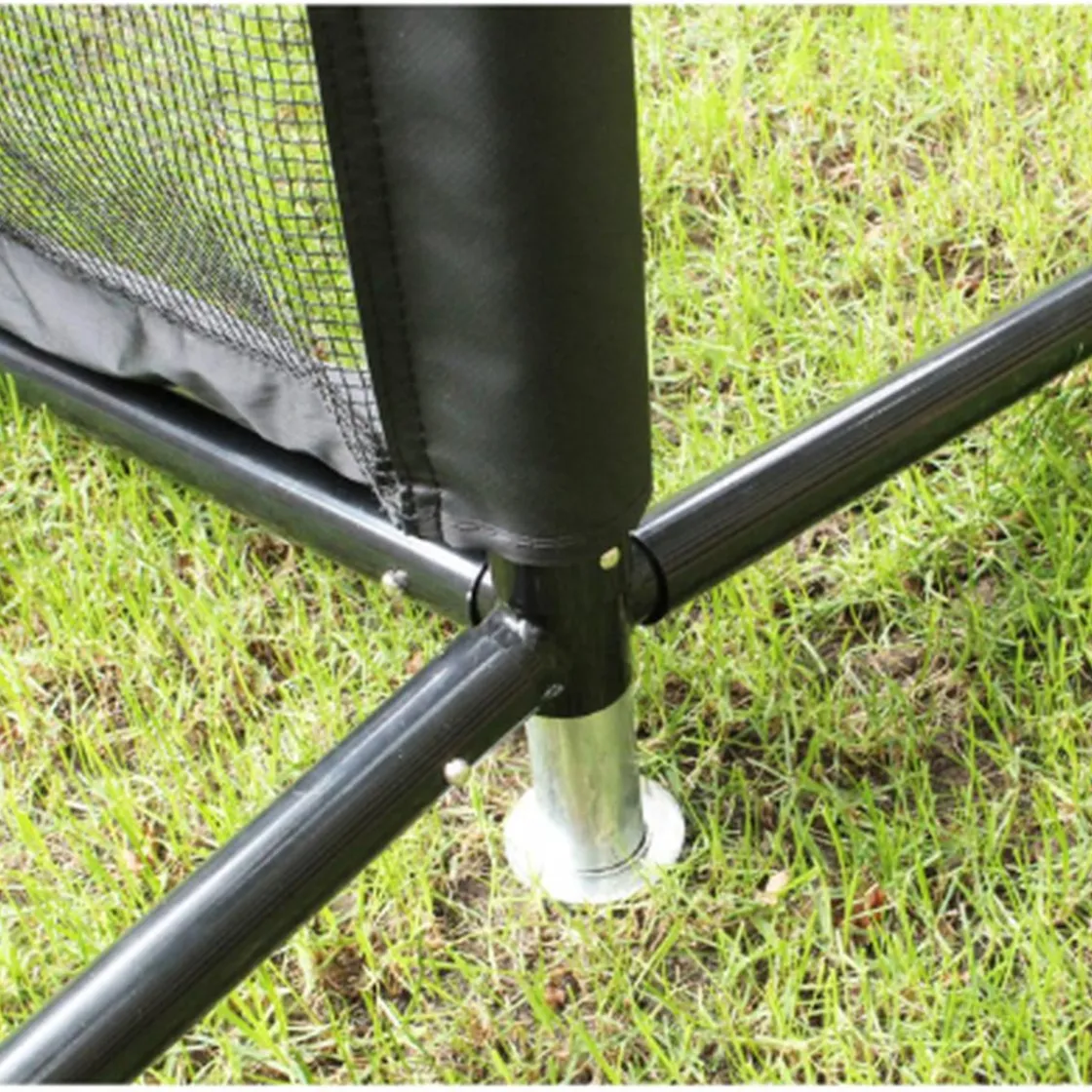 El borde superior verde limón de la red lo hace muy visible mientras juegas. El marco de la red deportiva ajustable Exit es robusto y tiene un robusto sistema de anclaje de tres patas que evita que la red se derrumbe durante un juego.