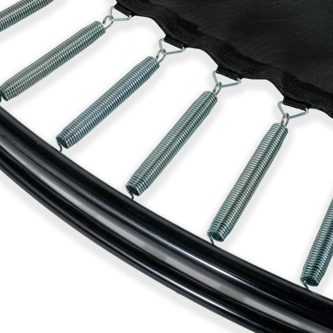 La lujosa versión en negro mate y los sutiles detalles de color le dan al trampolín un aspecto elegante y moderno.