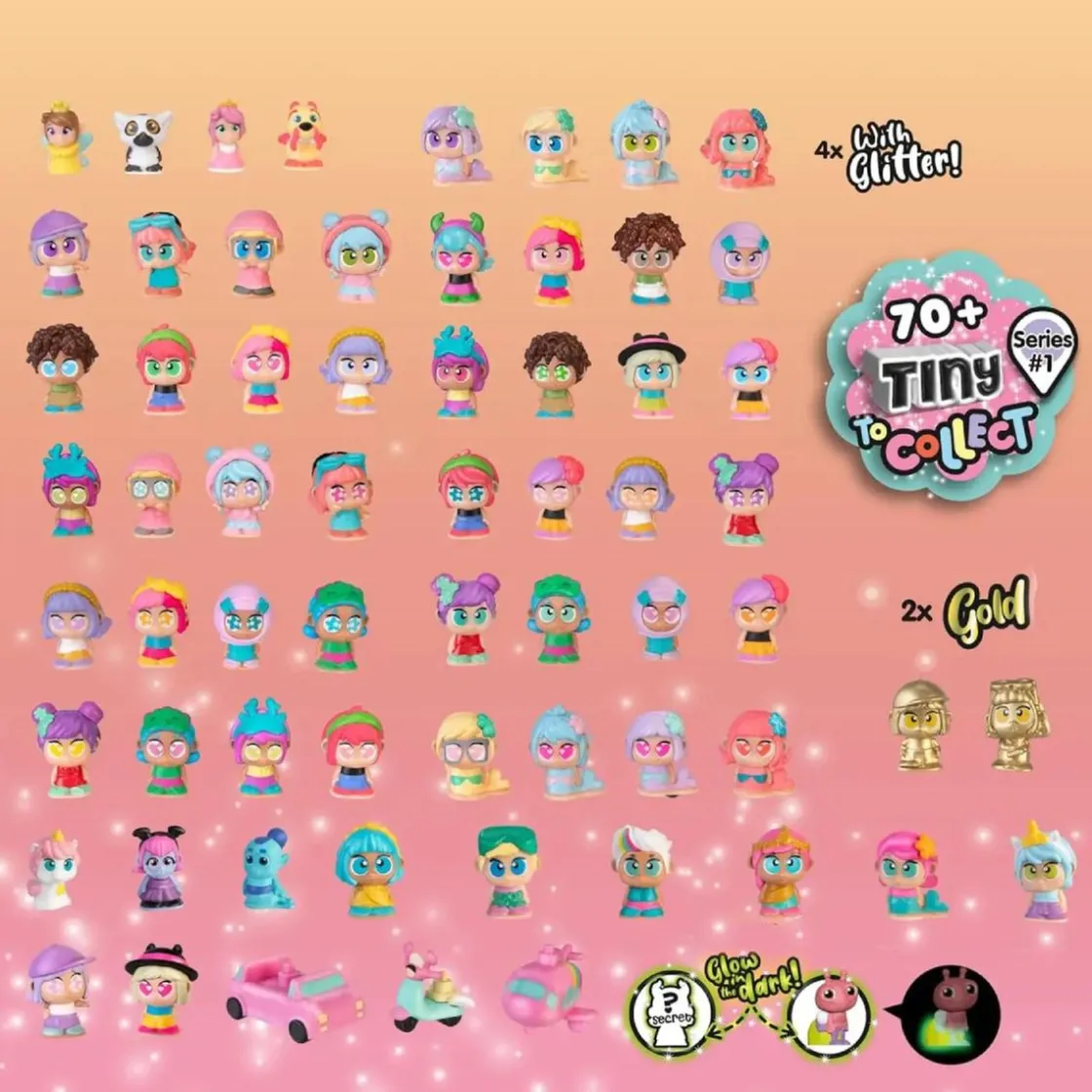 Tiny Trotties – Pack 11 Figuras con Sorpresa (varios modelos), uma caja con 11 personajes de los Tiny Trotties, uno de ellos es sorpresa y otro brilla en la oscuridad.